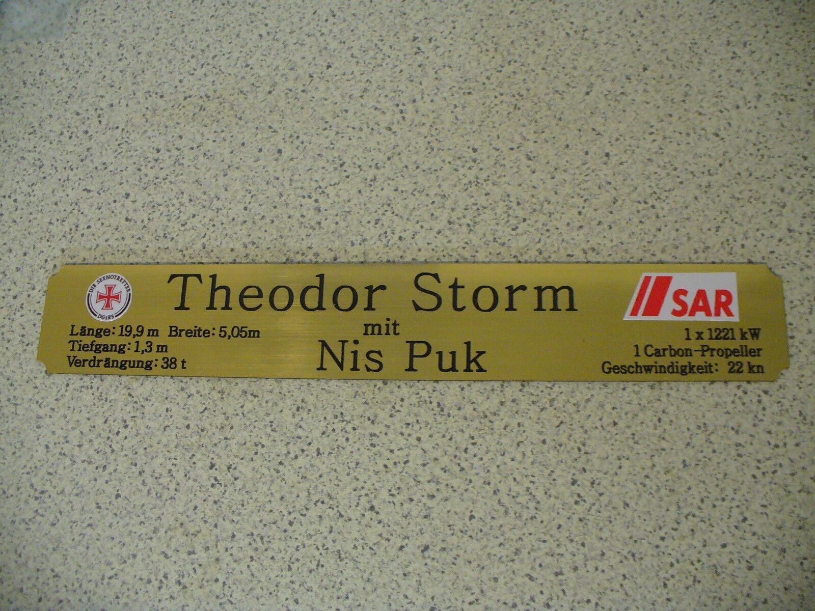 Sie bieten hier auf: 1 exclusives Namensschild mit Daten - Theodor Storm - mit farbigen Logos und verschiedenen Daten (siehe Bild) goldfarbig mit schwarzem Schriftzug (auch in weiss - oder silberfarbig möglich --> dann bitte angeben) Abmessung: 275 x 43 x 1,5 mm Das Schild ist von mir mit einer C