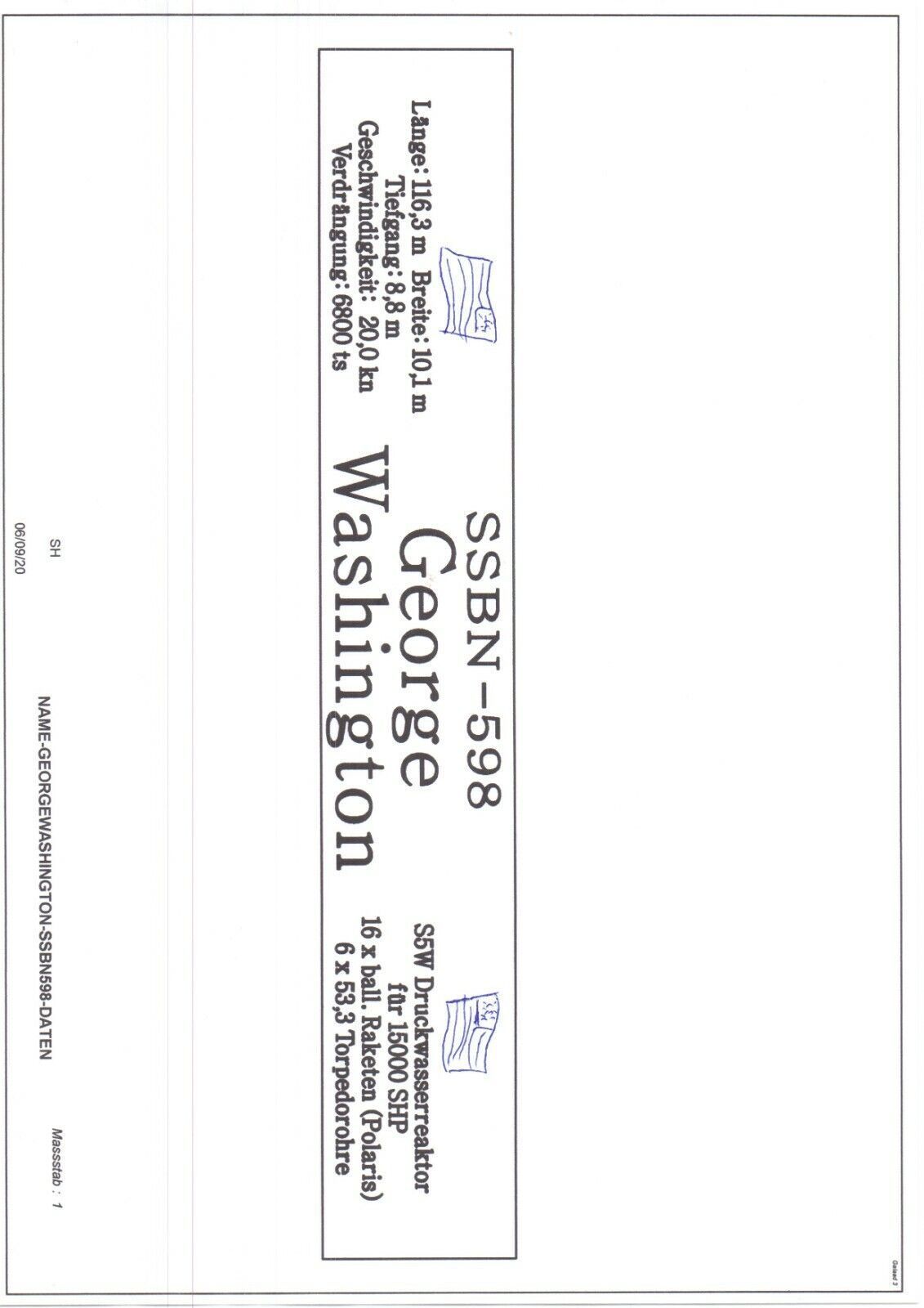 Namensschild für Modellständer mit Daten - USS George Washington SSBN-598