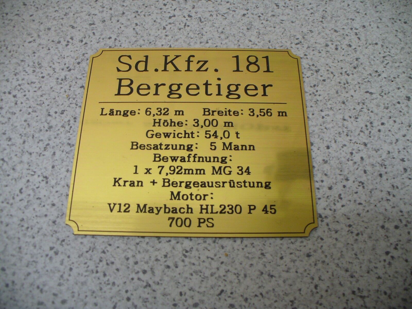 Sie bieten hier auf: 1 Namensschild - Bergetiger - mit verschiedenen Daten (siehe Bild) goldfarbig mit schwarzem Schriftzug (auch in weiss - oder silberfarbig möglich --> dann bitte angeben) Abmessung: 94 x 87 x 1,5 mm Das Schild ist von mir mit einer CNC-Fräse aus 1,5mm dickem, 2-farbigem Gravie
