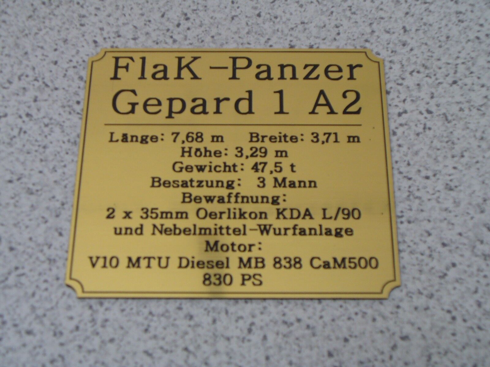 Namensschild für Modellständer oder Diorama - Gepard 1 A2