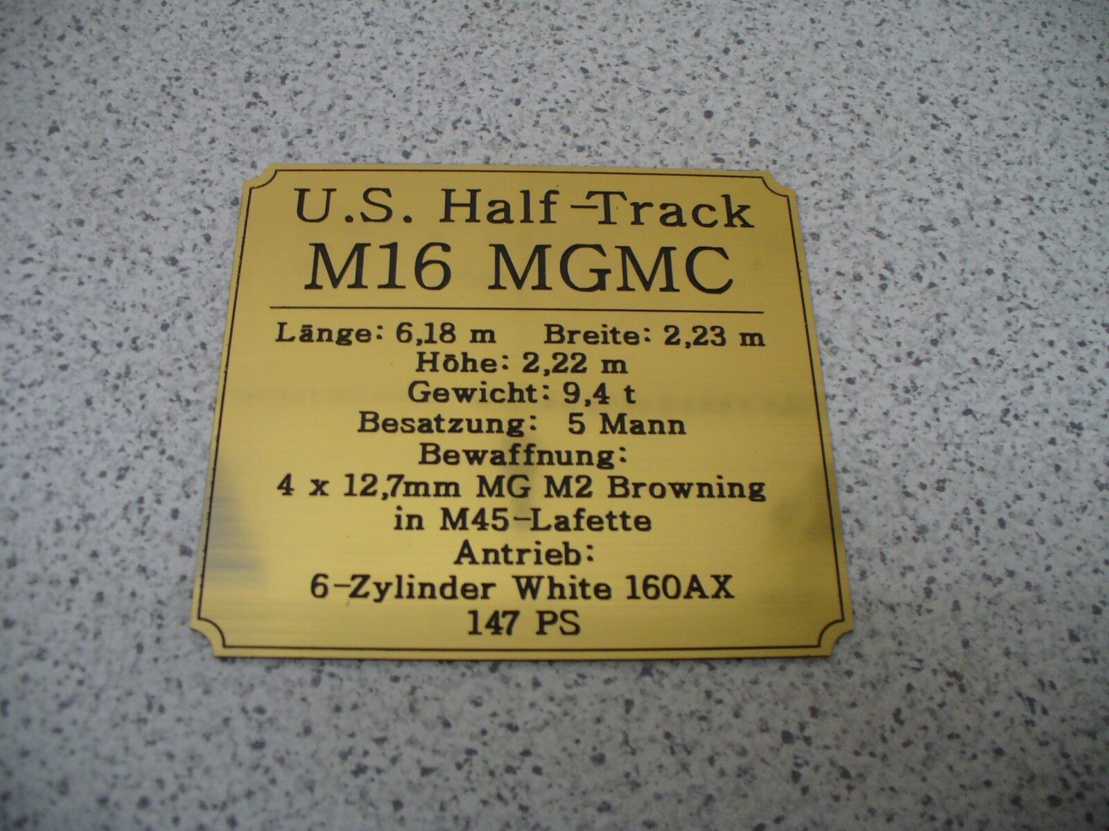 Namensschild für Modellständer oder Diorama - M16 MGMC Halftrack