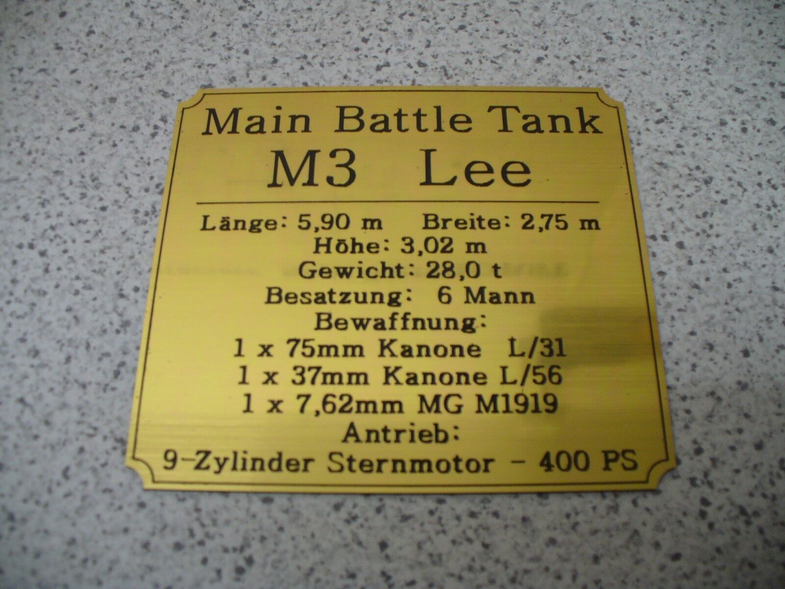 Namensschild für Modellständer oder Diorama - M3 Lee
