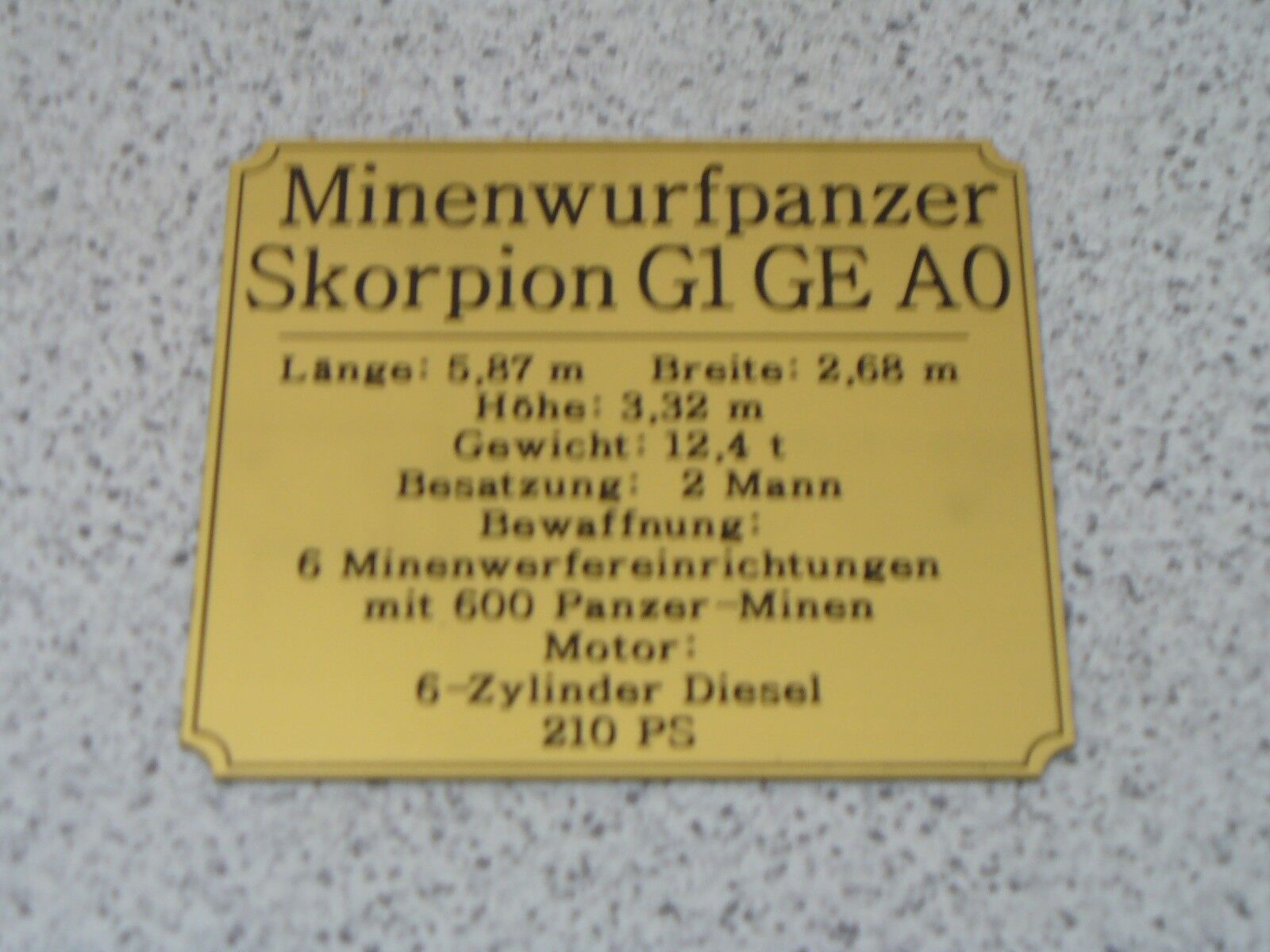 Namensschild für Modellständer oder Diorama - Minenwurfpanzer Skorpion G1GE A0