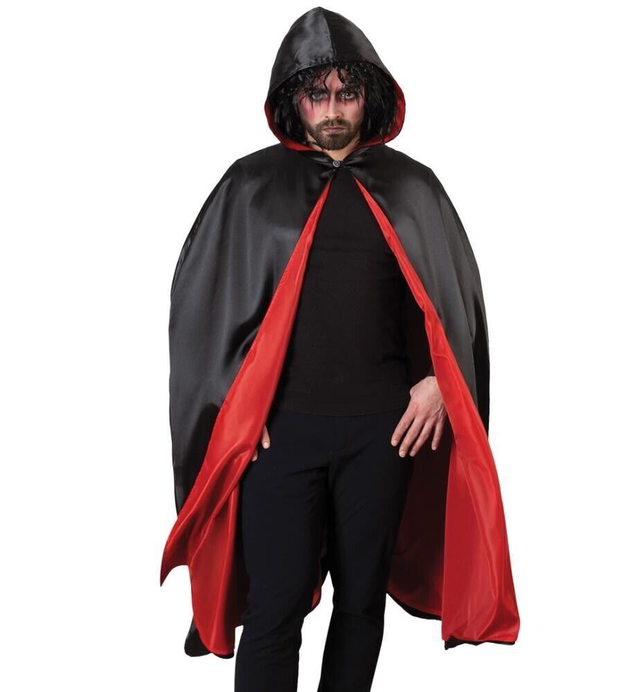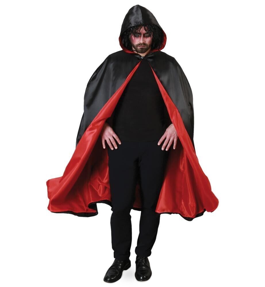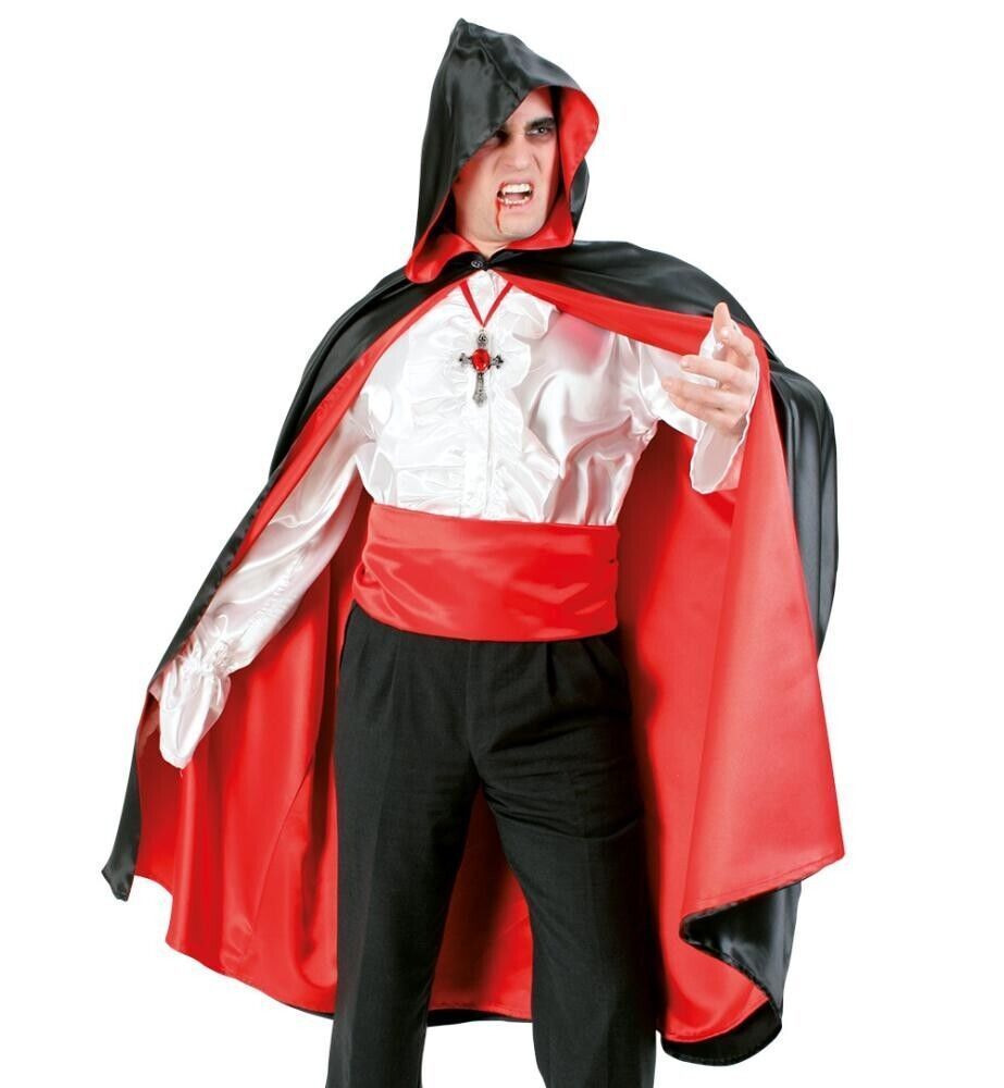 narrenwelt Kostüm Cape mit Kapuze schwarz/rot Halloween Dracula Vampir Gr L - XX