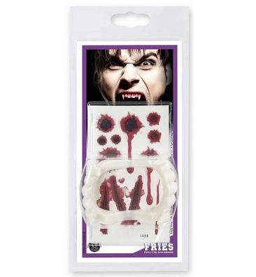 • narrenwelt Vampir - Set Tattoos+Vampirzähne+Kunstblut 3tlg Vampirset Halloween
