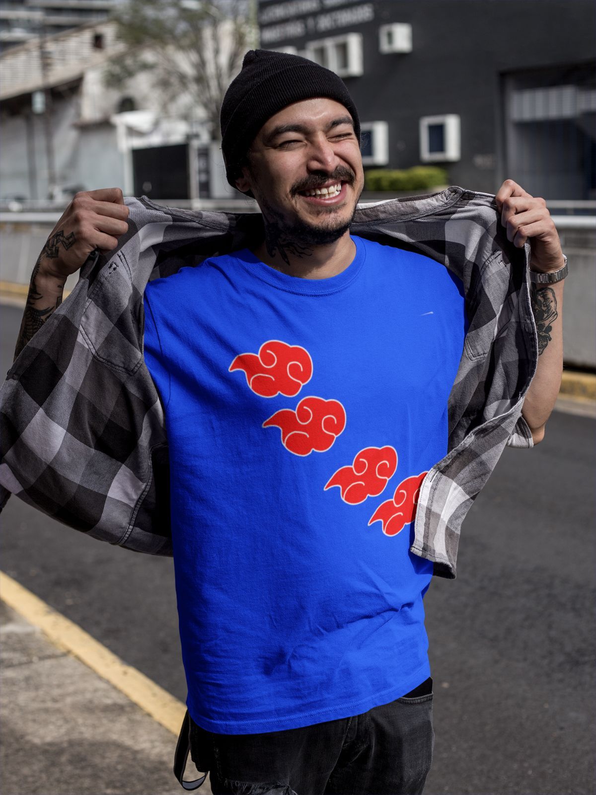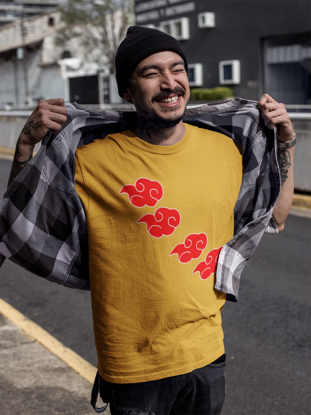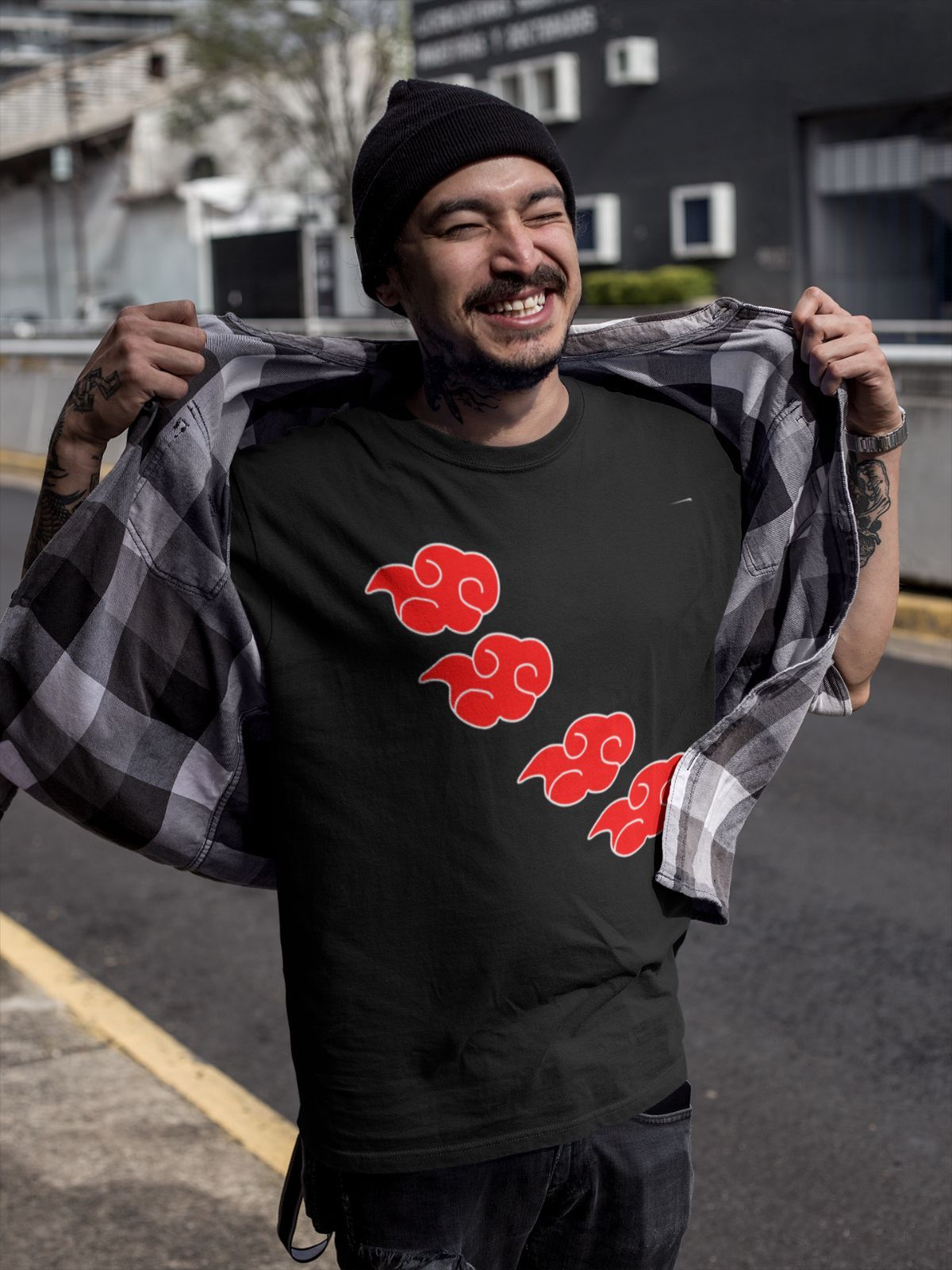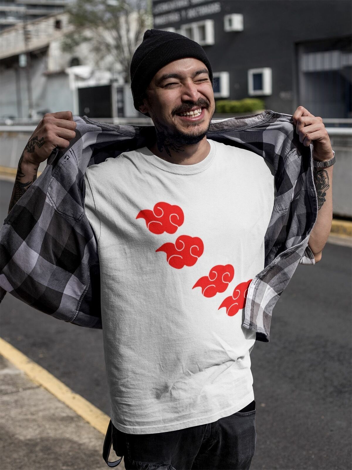 Naruto Akatsuki Logo Rote Wolken - Anime T-Shirt Herren Bio Baumwolle