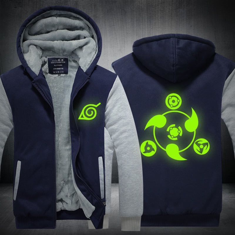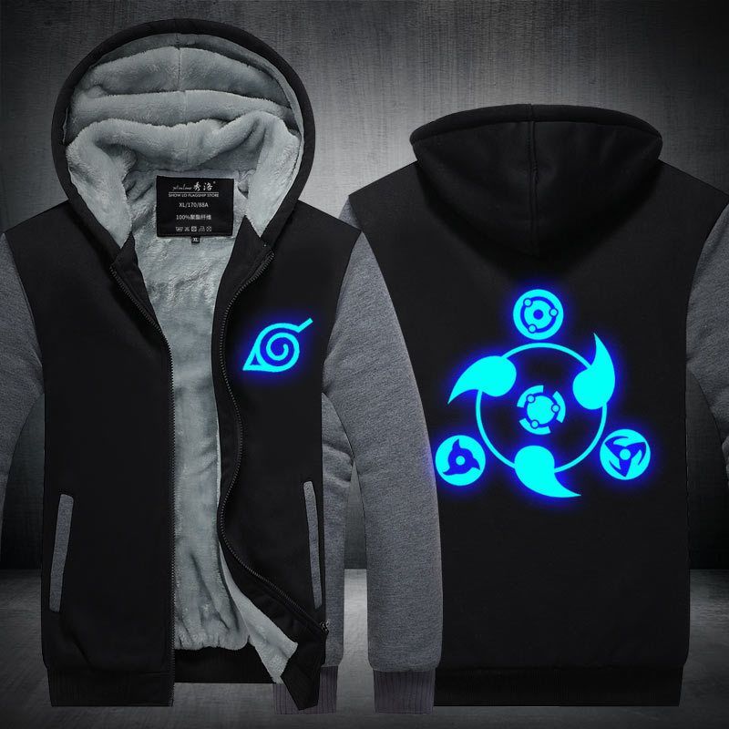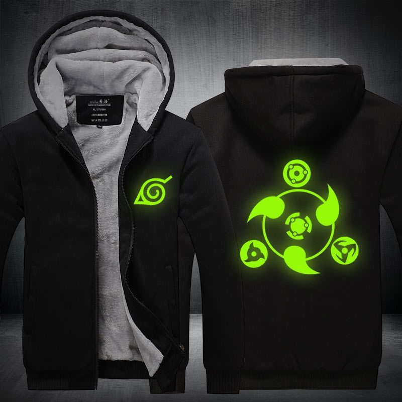 Naruto Sharingan Verdickt Warmer Leuchtender Kapuzenmantel Herren Zip Hoody