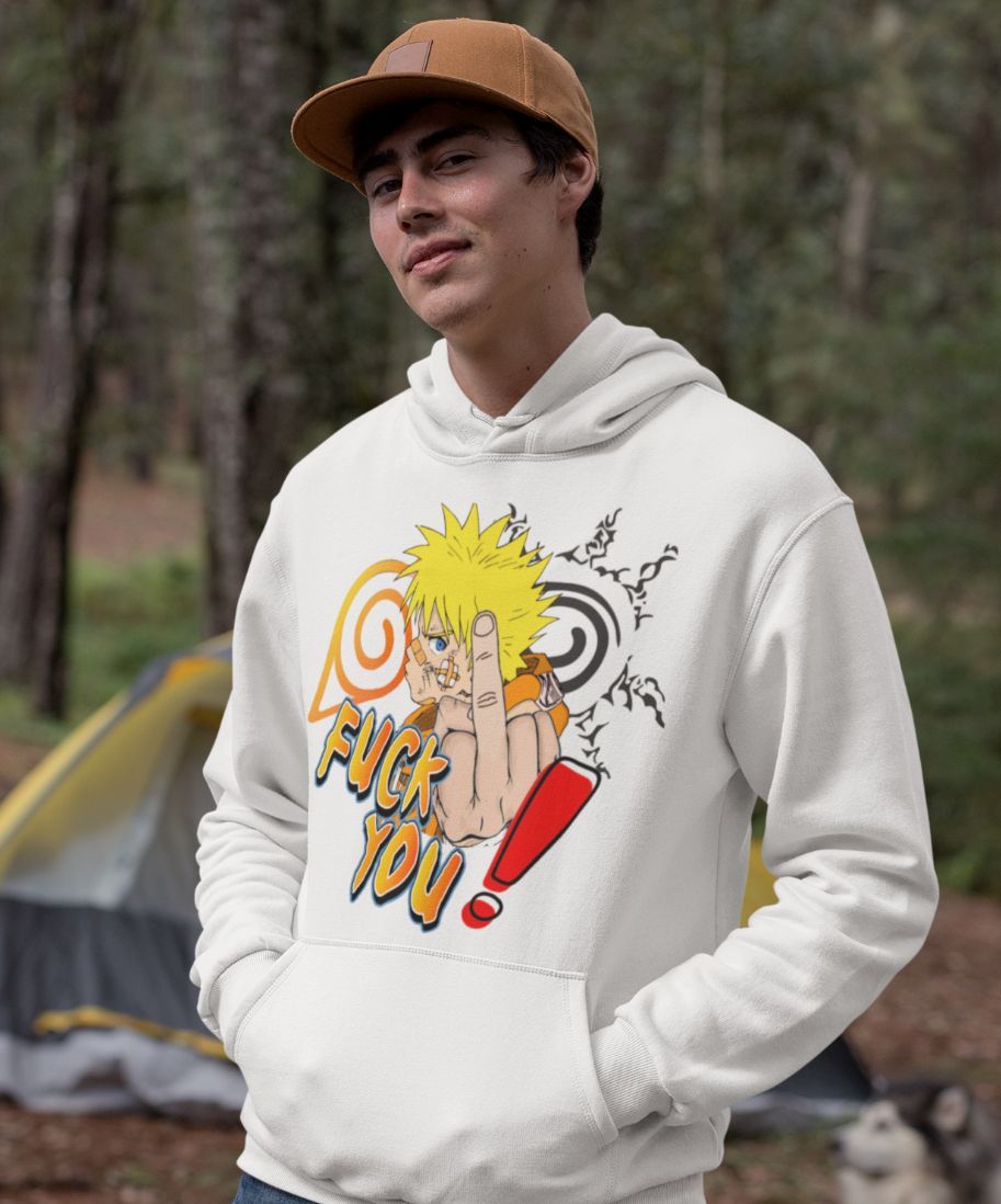 Naruto Shippuden Anime Bio Herren Hoodie FUCK YOU Mittelfinger Ninja
