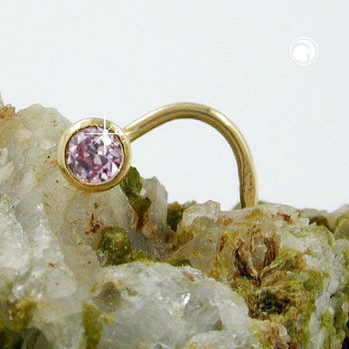 Nasenstecker 2,5mm Spirale mit Zirkonia rund pink 18Kt Gold