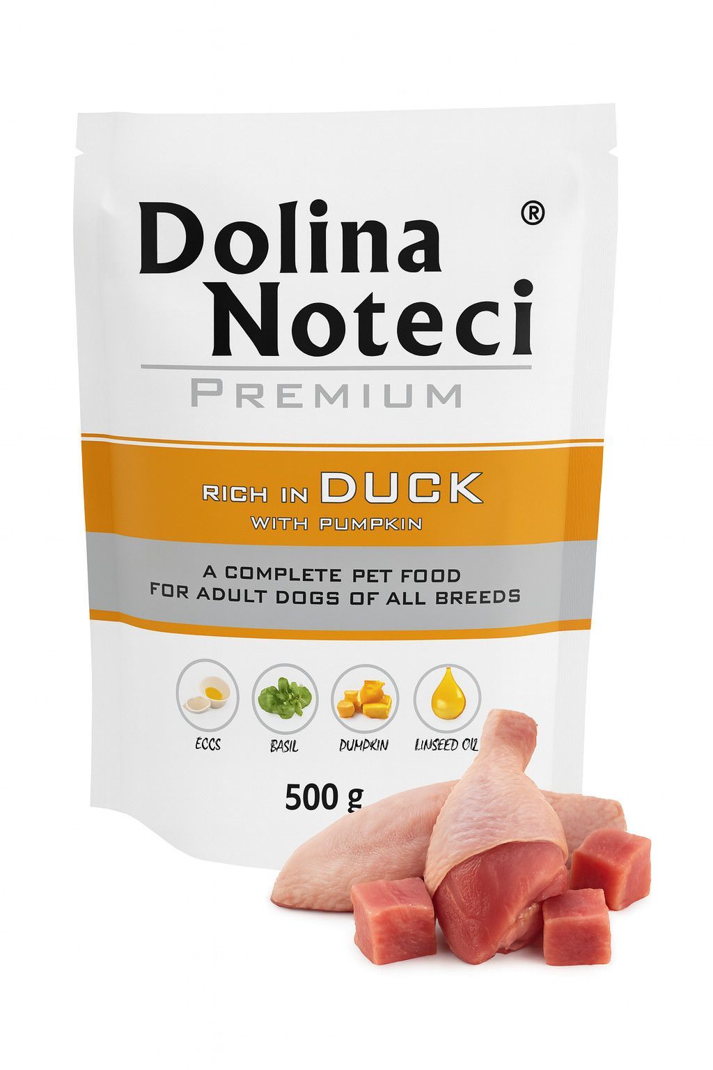 Nassfutter für Hunde Dolina Noteci Premium reich an Ente mit Kürbis 500 g Beutel