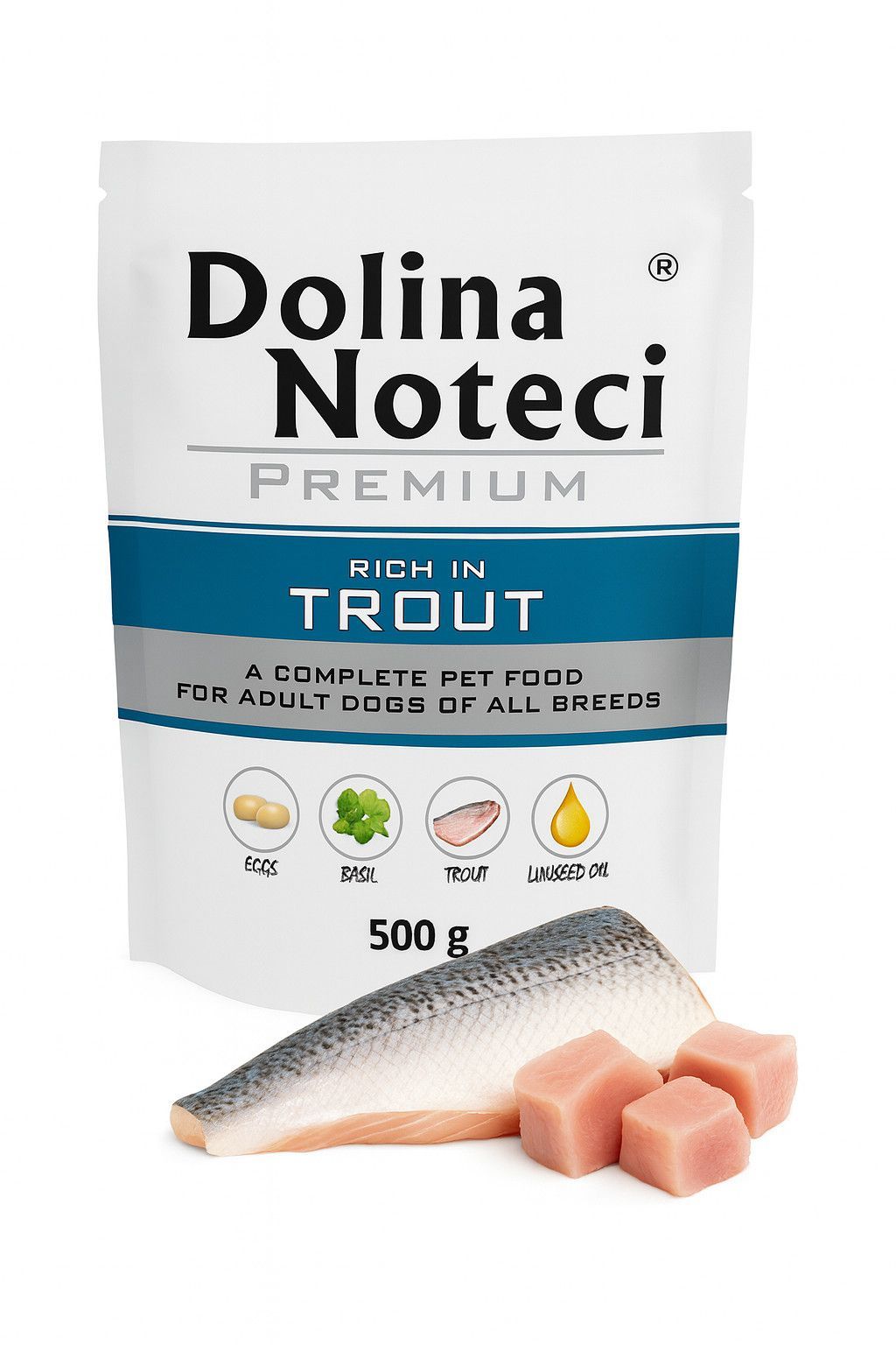 Nassfutter für Hunde Dolina Noteci Premium reich an Forelle 500 g Beutel