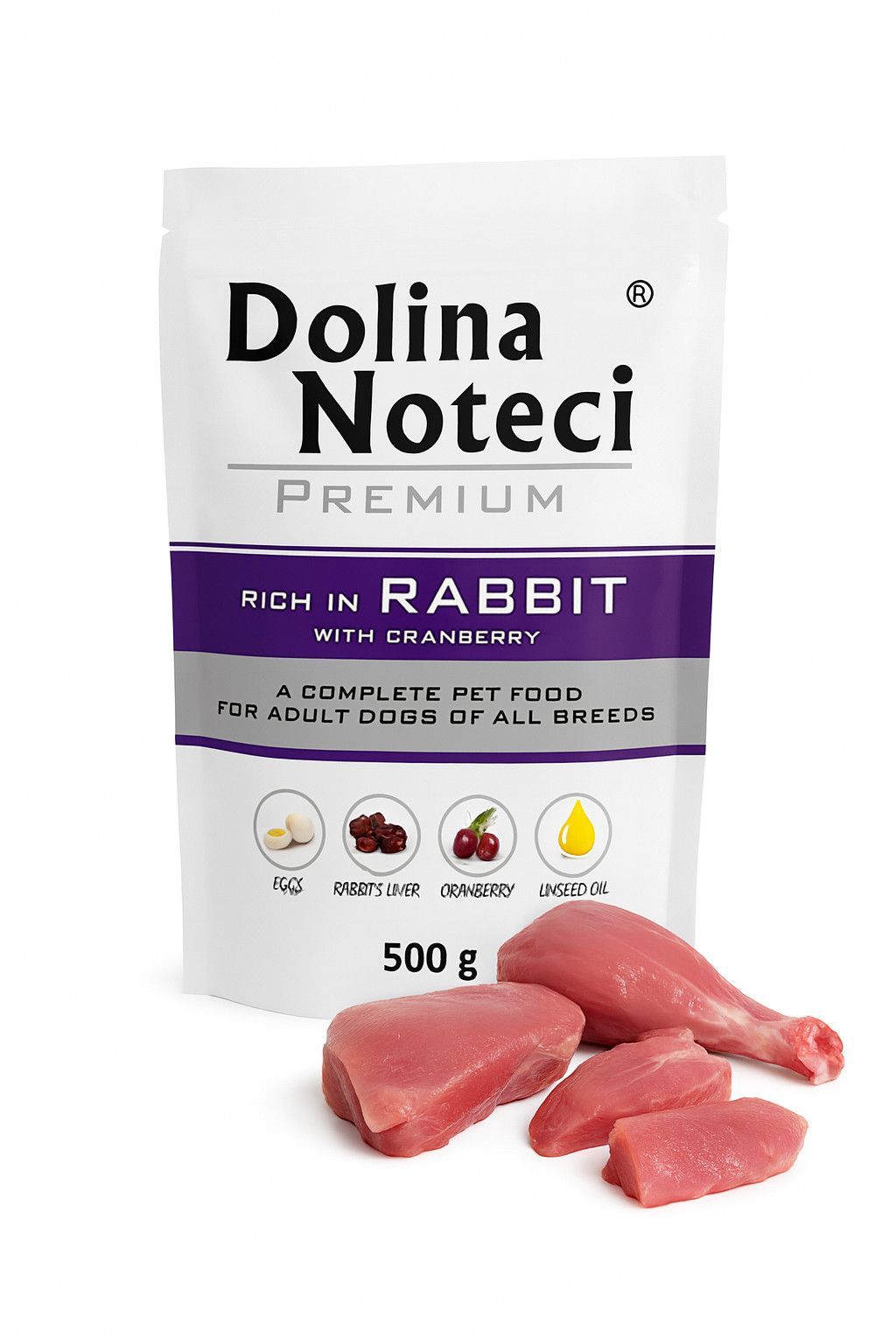 Nassfutter für Hunde Dolina Noteci Premium reich an Kaninchen mit Cranberry 500