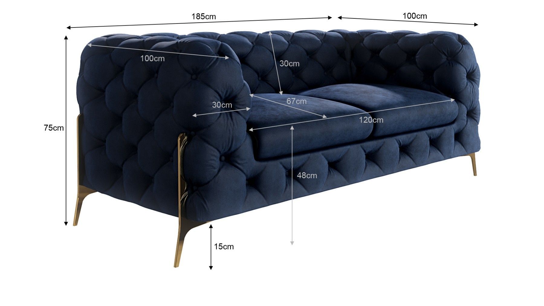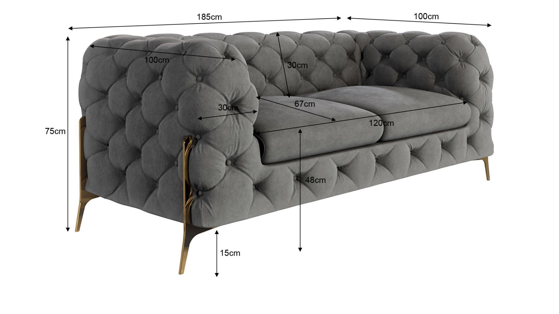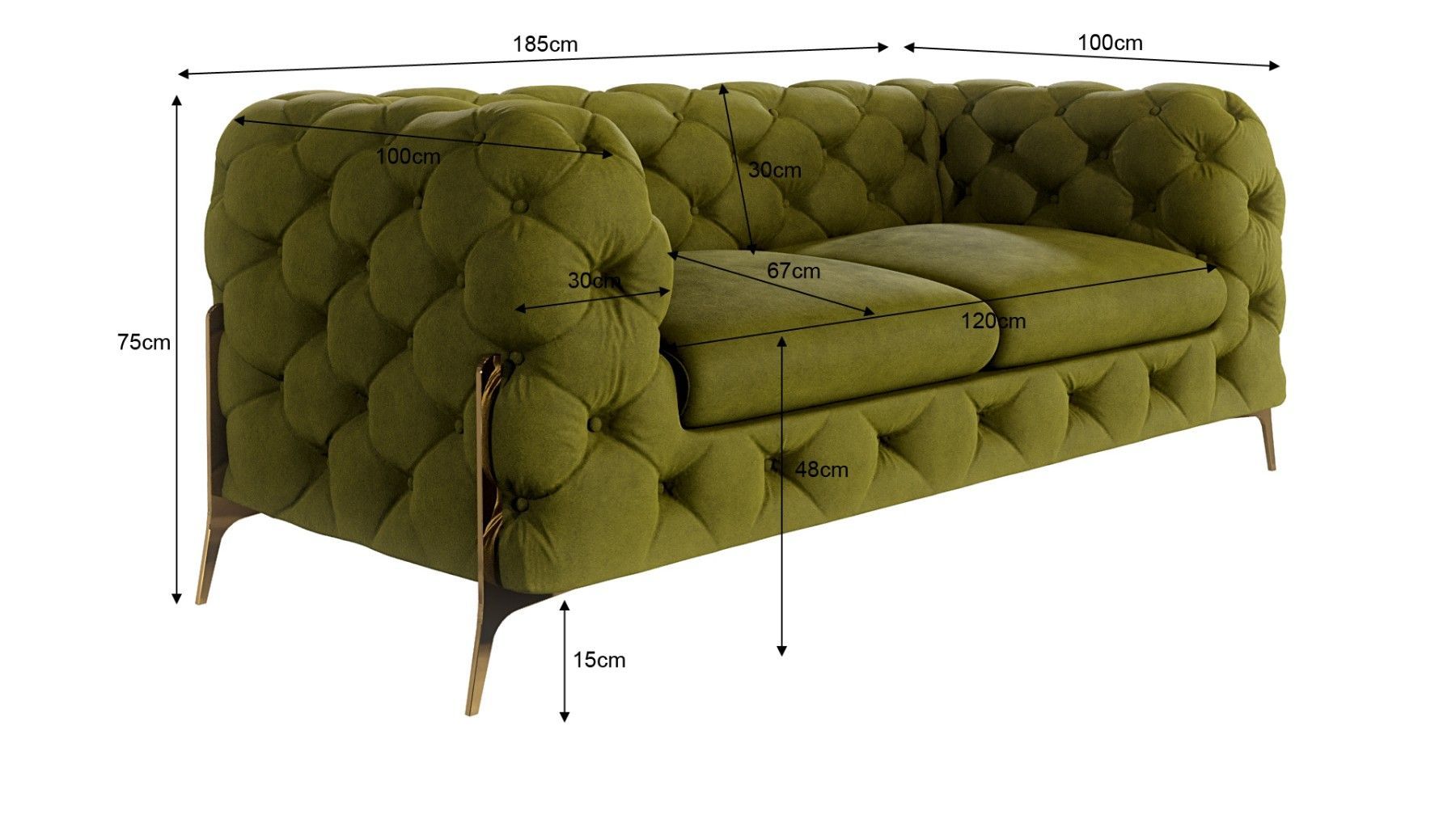 Natalie - Chesterfield Sofa 2-Sitzer mit Goldene Metall Füßen