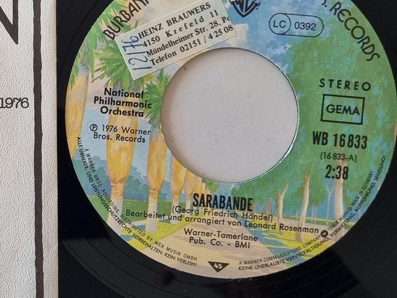 National Philharmonic Orchestra - Sarabande 7'' Vinyl Germany/ Barry Lyndon