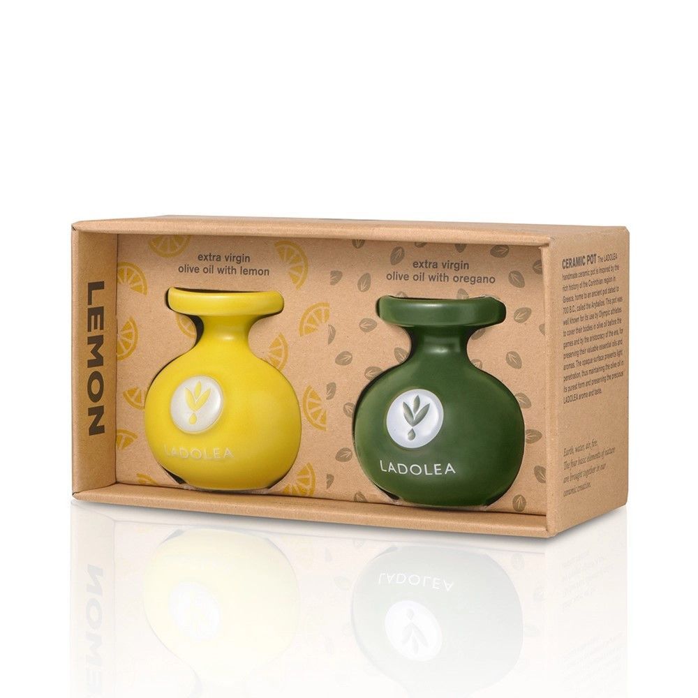 Natives Olivenöl Extra mit Zitrone & Oregano im Tongefäss und Korkverschluss