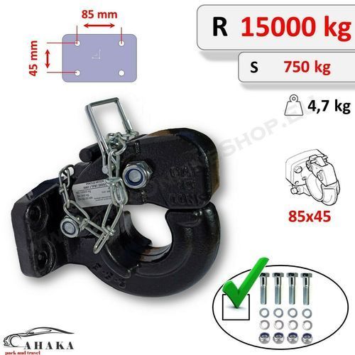 NATO-Hakenkupplung 15000 kg mit Anschraubplatte 85 x 45 mm Lochbild AHK-Zughaken