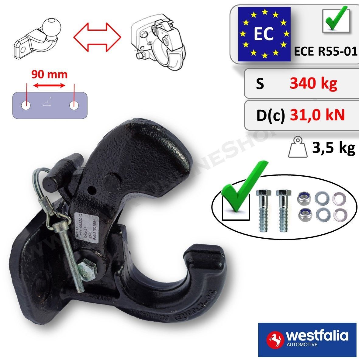 Westfalia NATO-Hakenkupplung mit Anschraubplatte mit 2-Loch 90 mm Abstand AHK-Zughaken