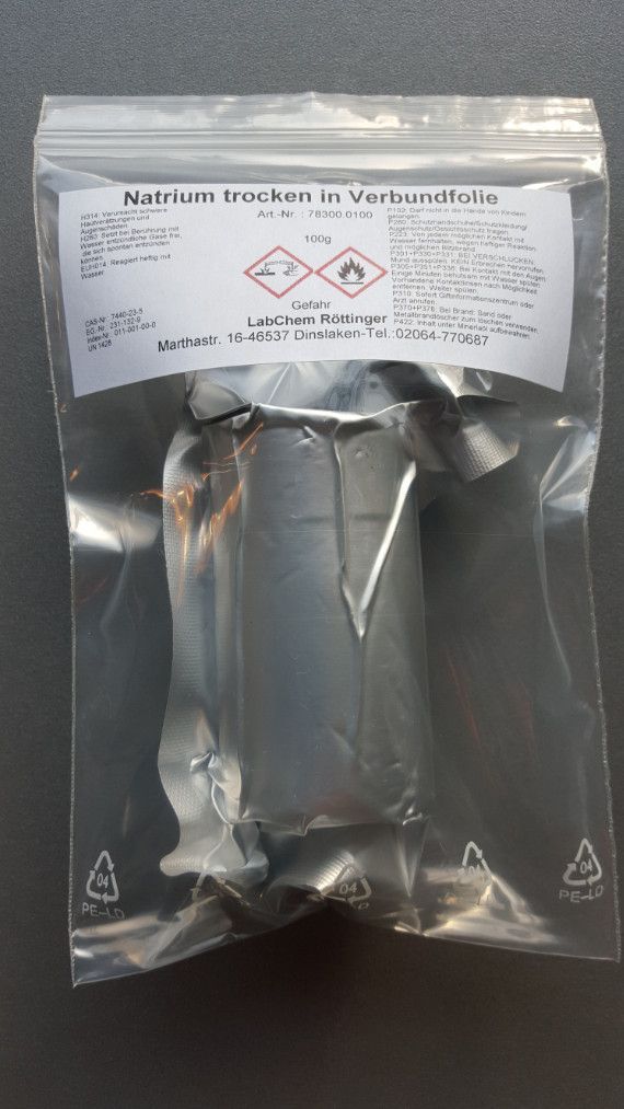 Natrium Alkalimetall Natrium elemtar Na in Al-Verbundfolie 100g