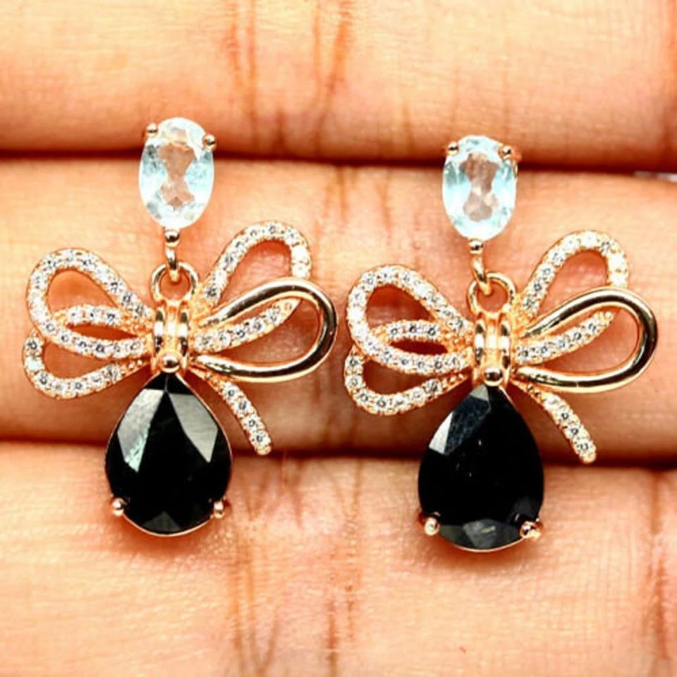 Natürliche Tropfen Saphir und Topas Ohrringe Sterling Silber/ Rose Gold Plated