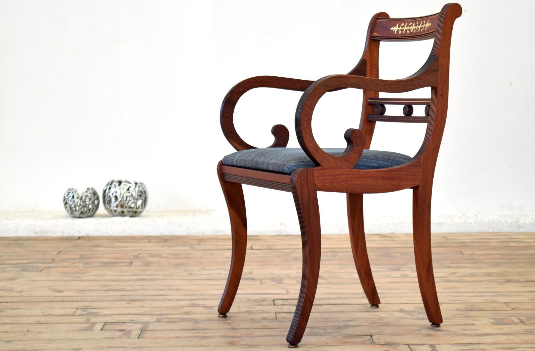 natürlicher Armlehnenstuhl Biedermeier Shabby Antik Alt Vintage Holz Mahagoni Maritim