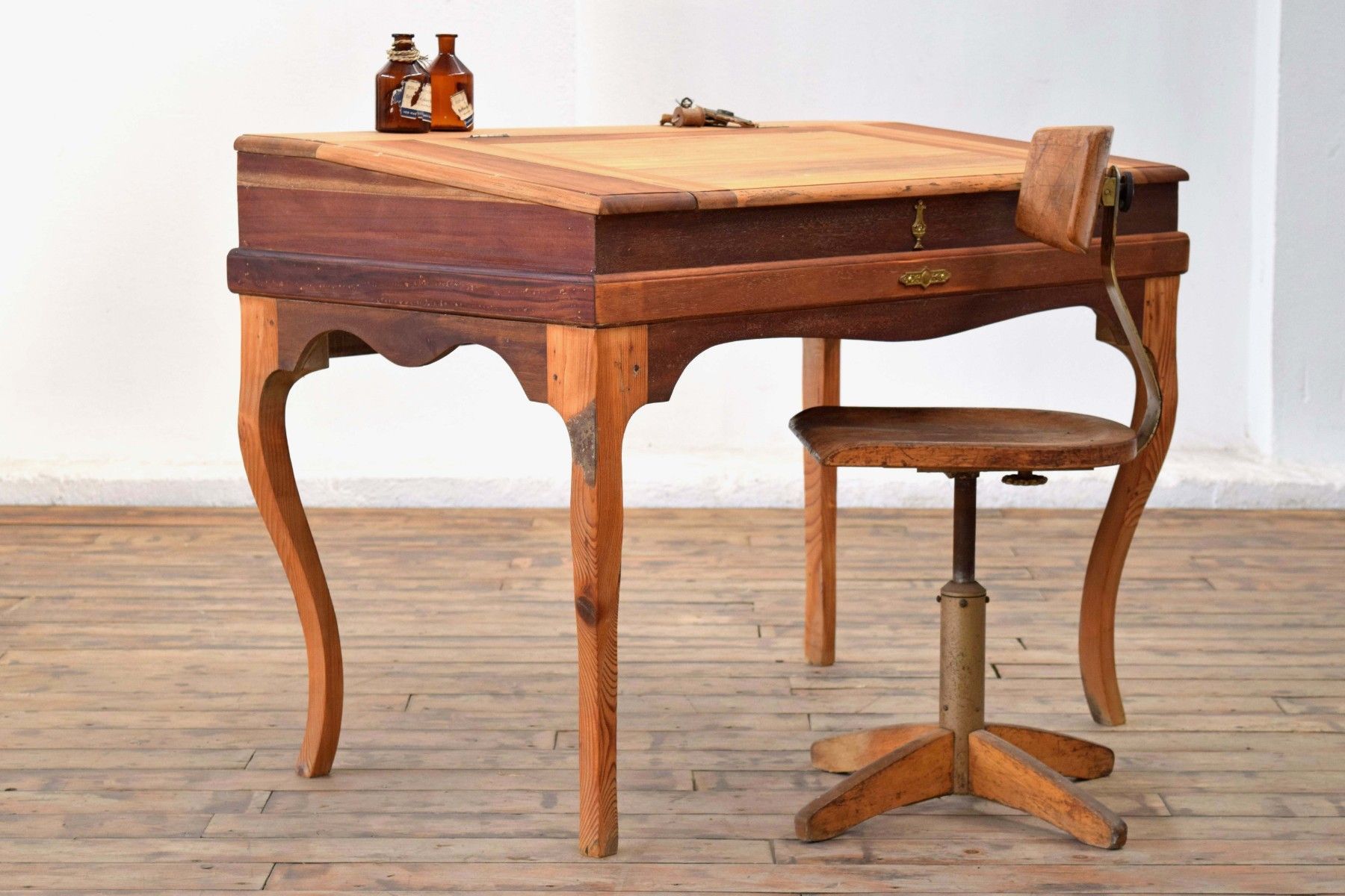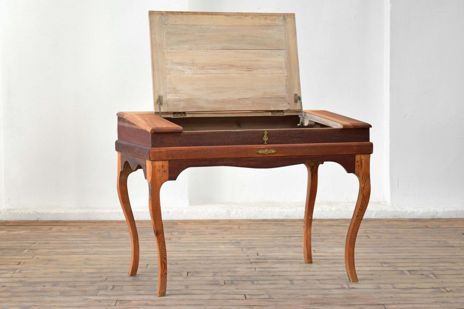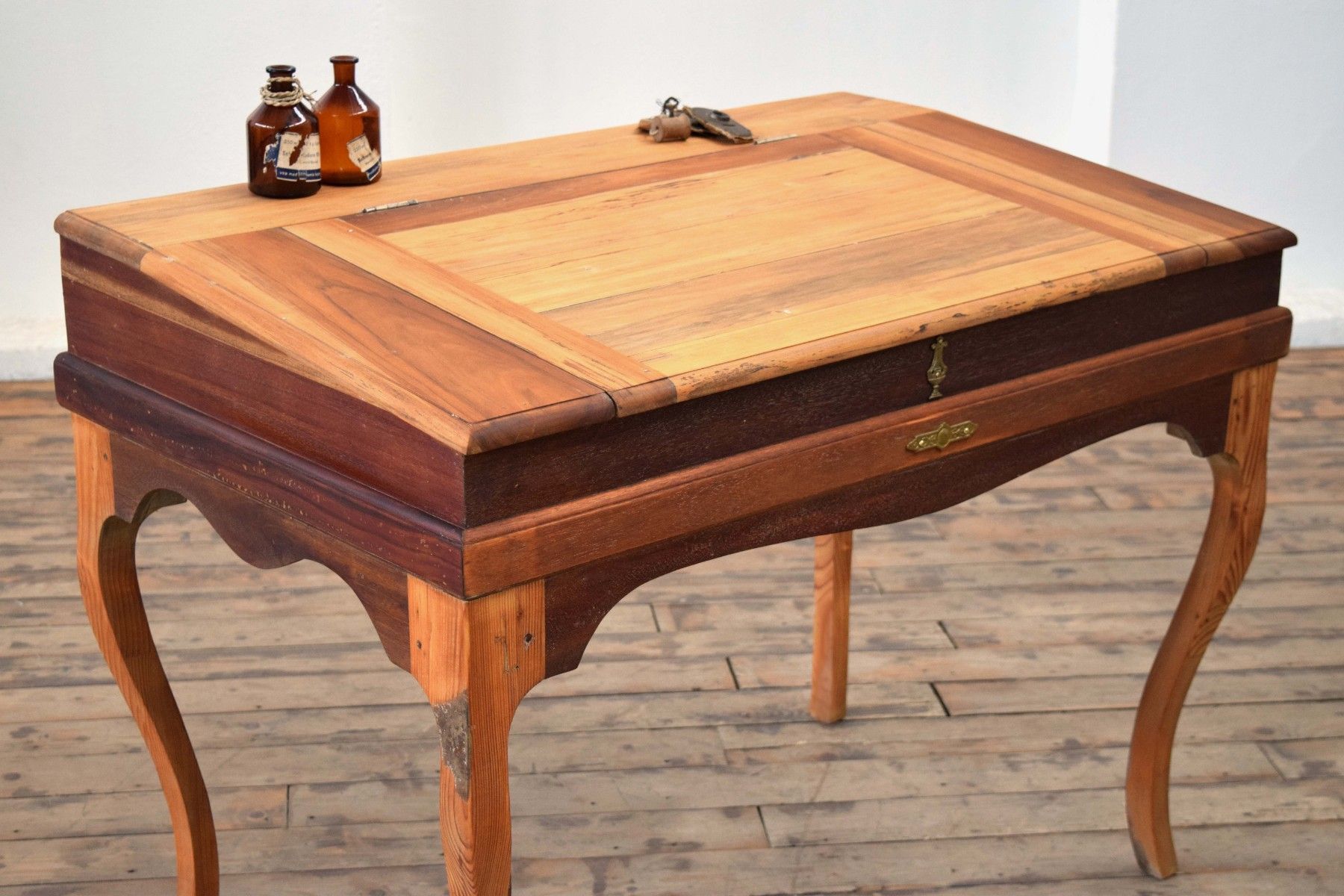 natürlicher Schreibtisch Teak Holz Louis Shabby Vintage Alt Sekretär Antik