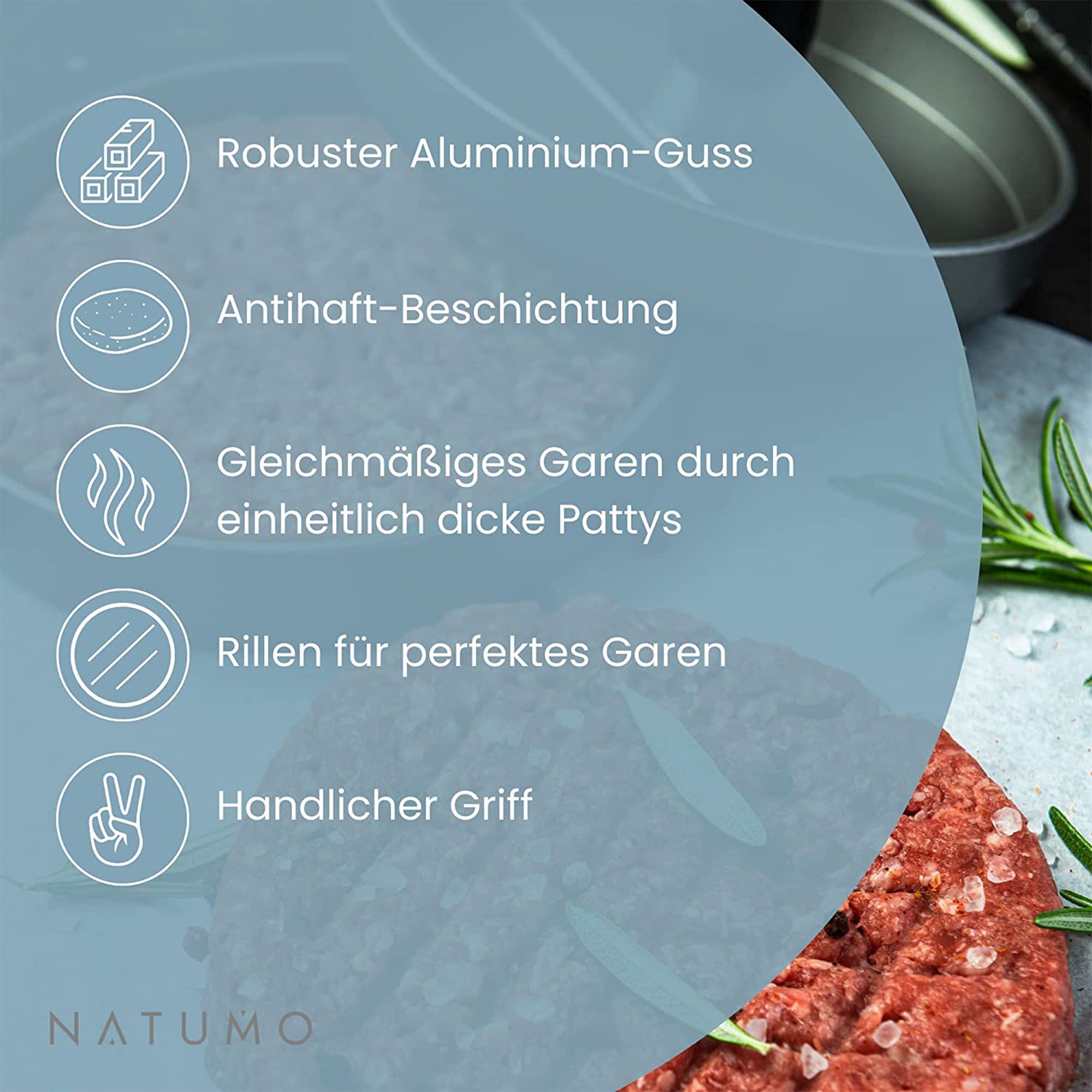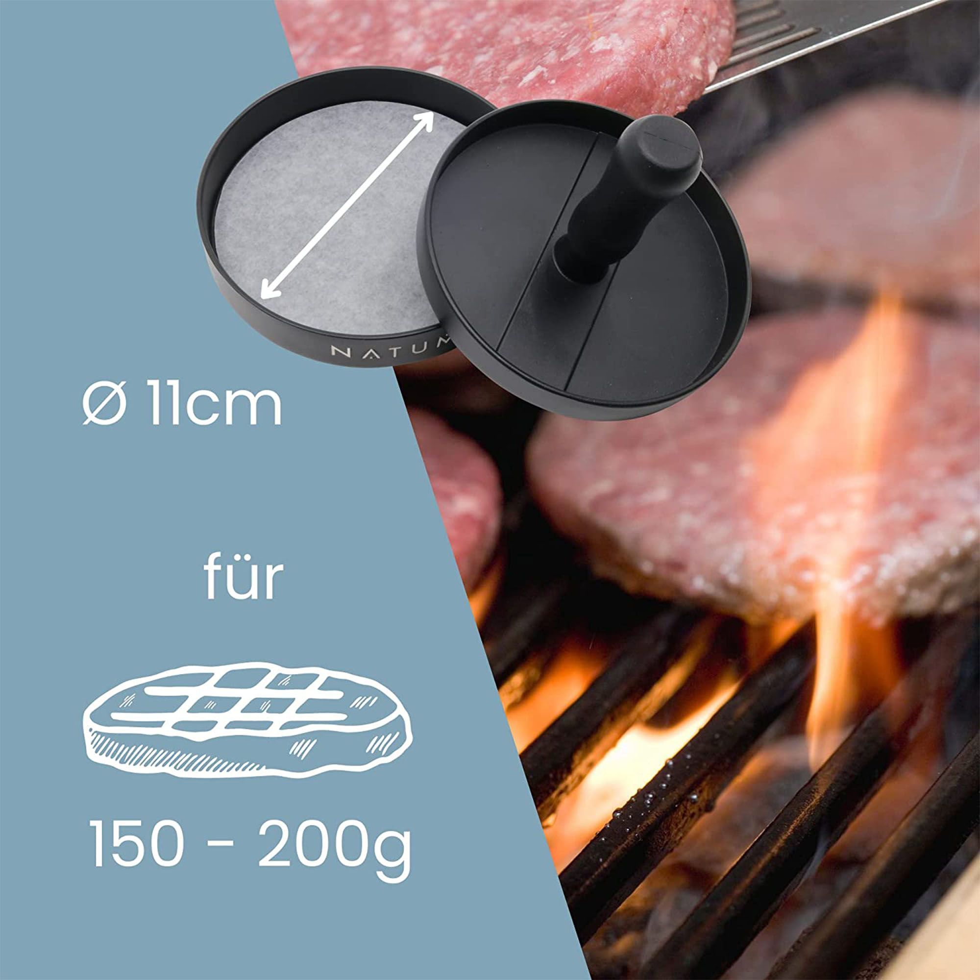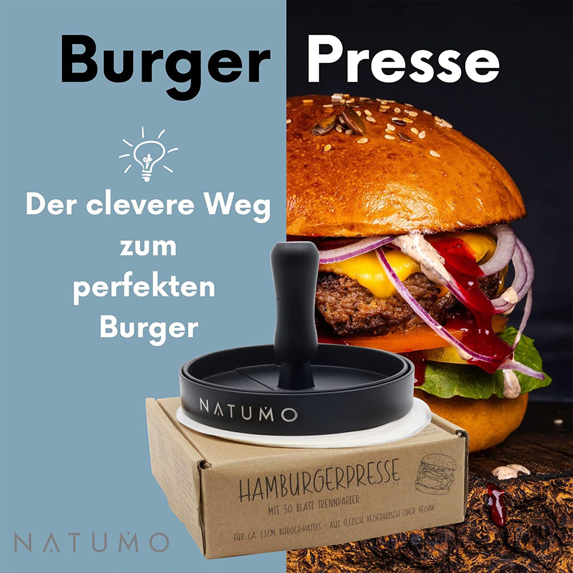 NATUMO Burgerpresse Set aus Hamburgerpresse und Burger Papier (50x Trennpapier),