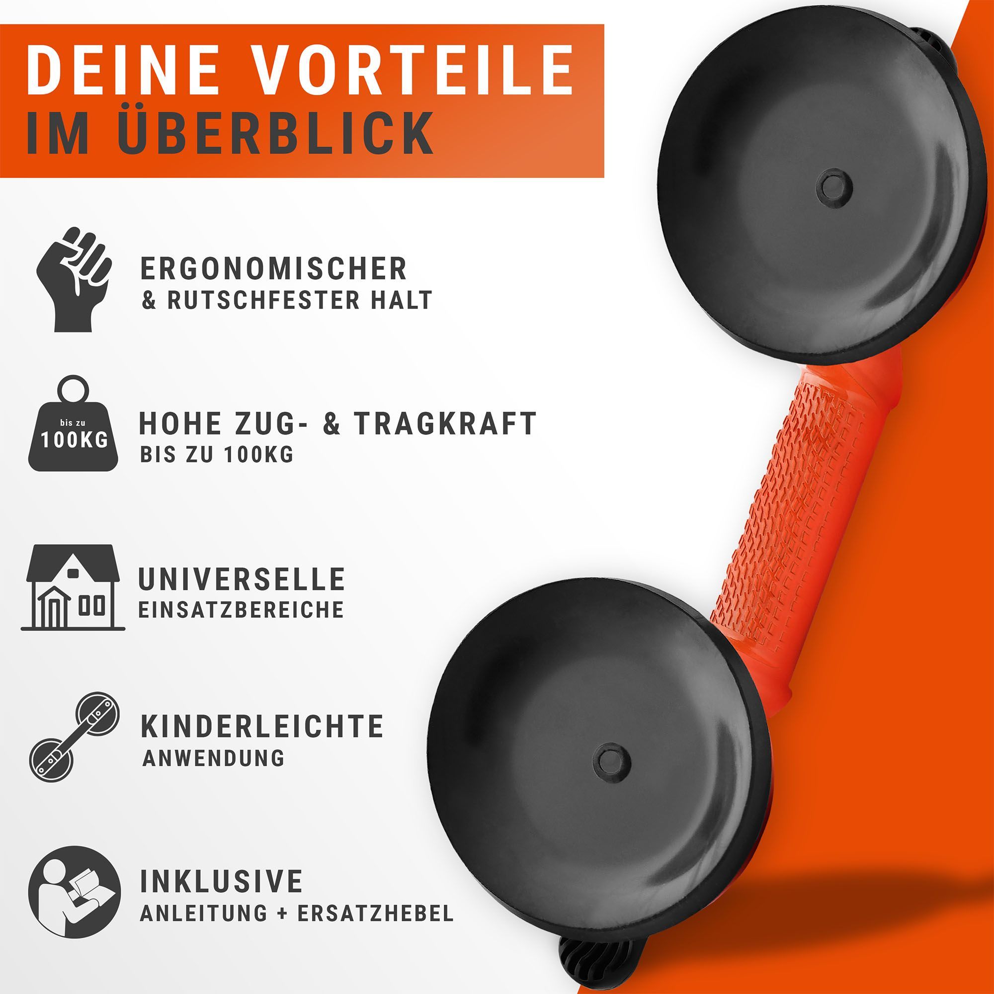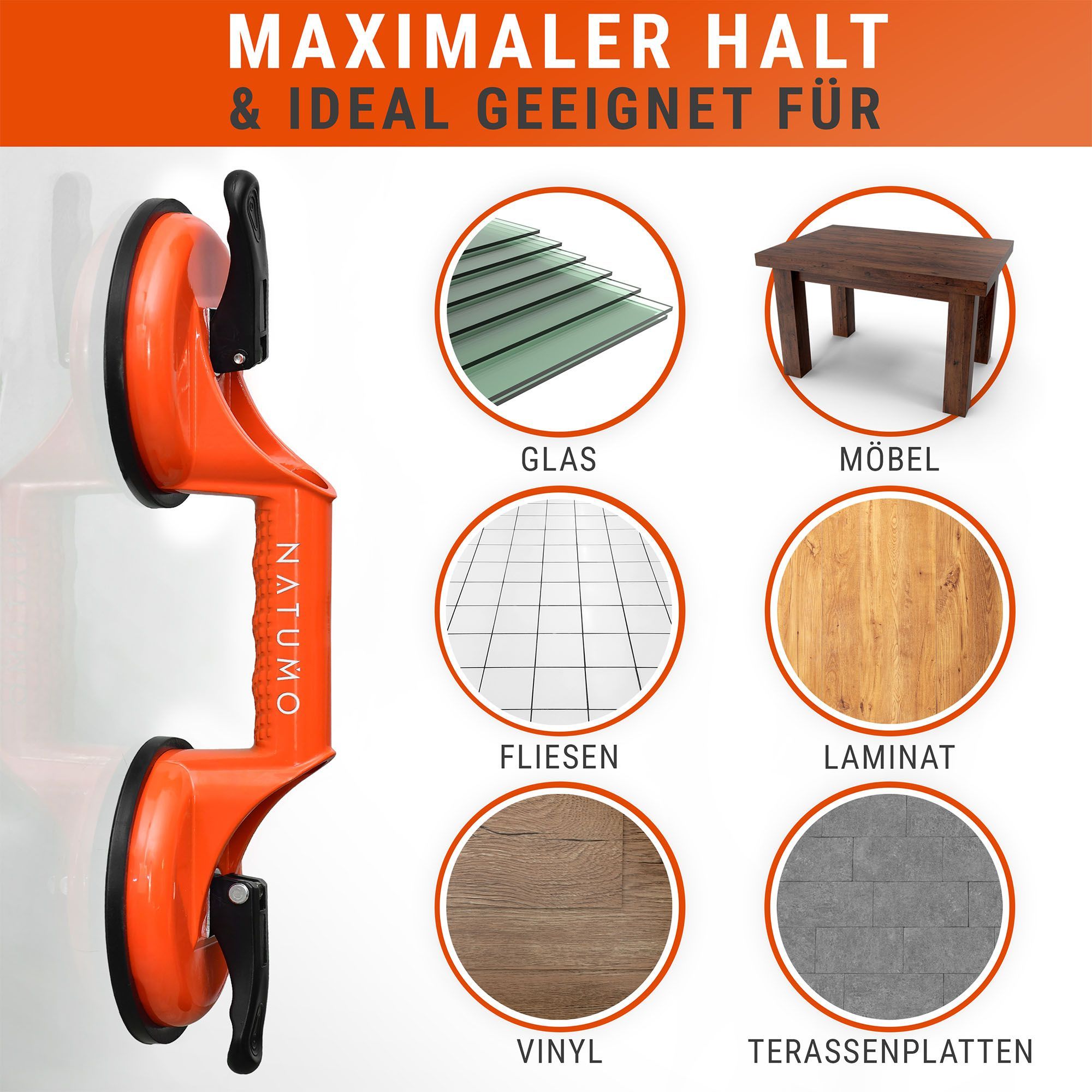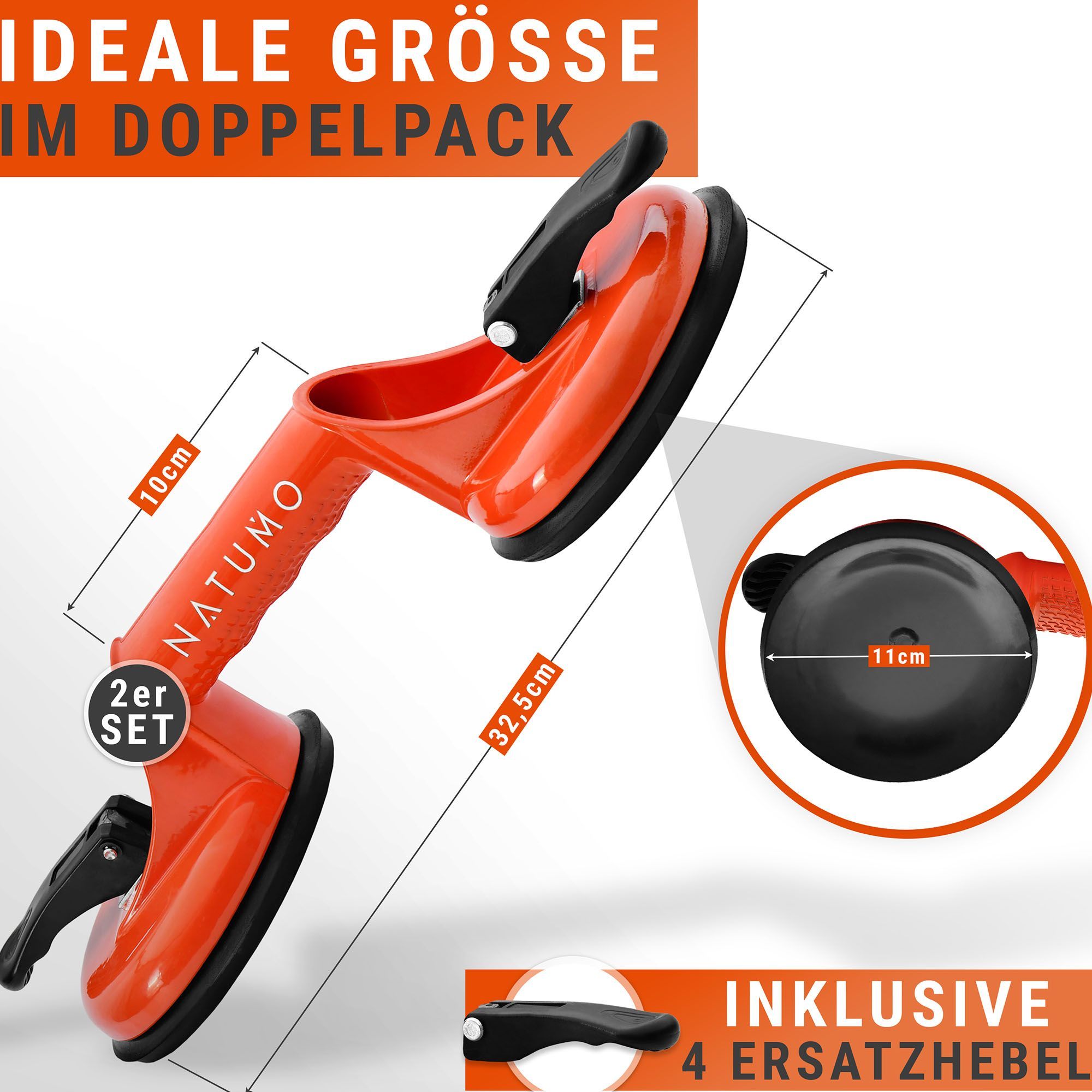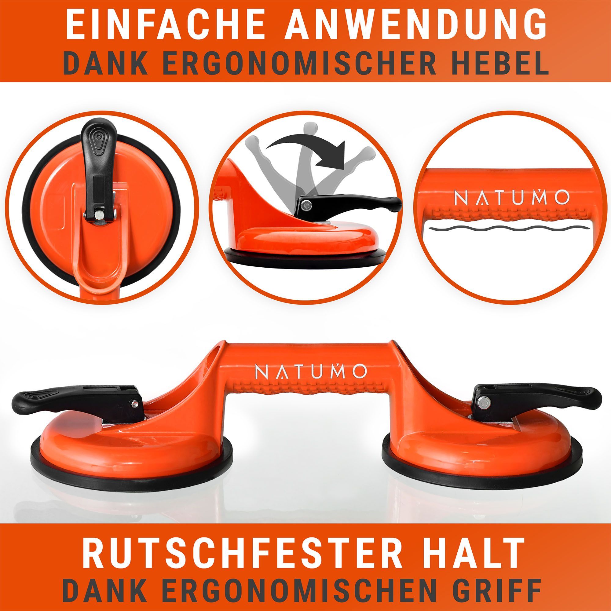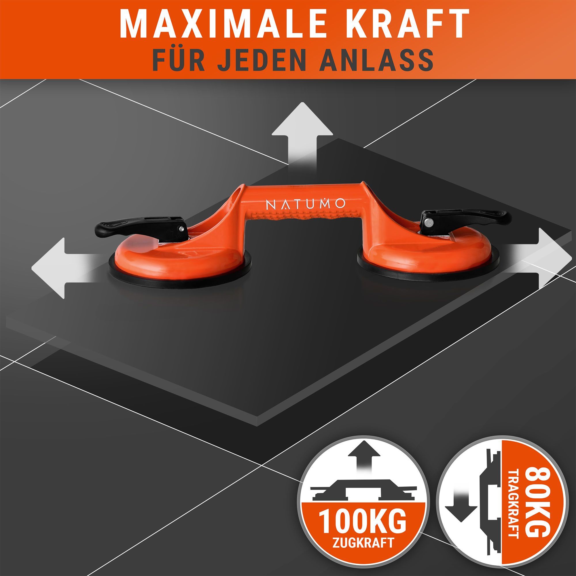 NATUMO® Saugheber [2er Set] - Glassauger mit 100kg Tragkraft - Vakuumheber mit