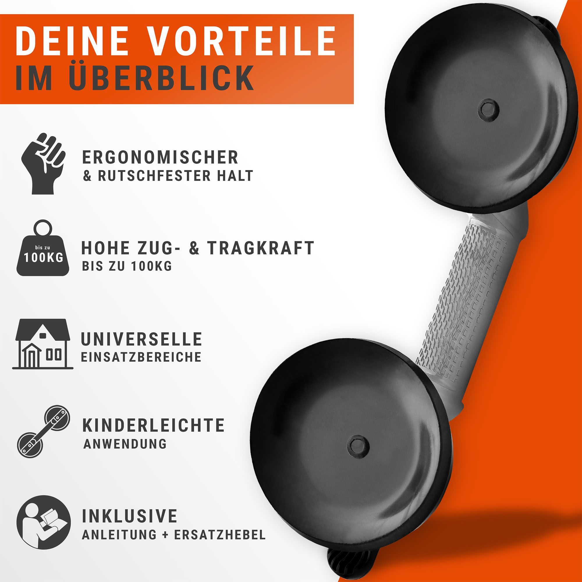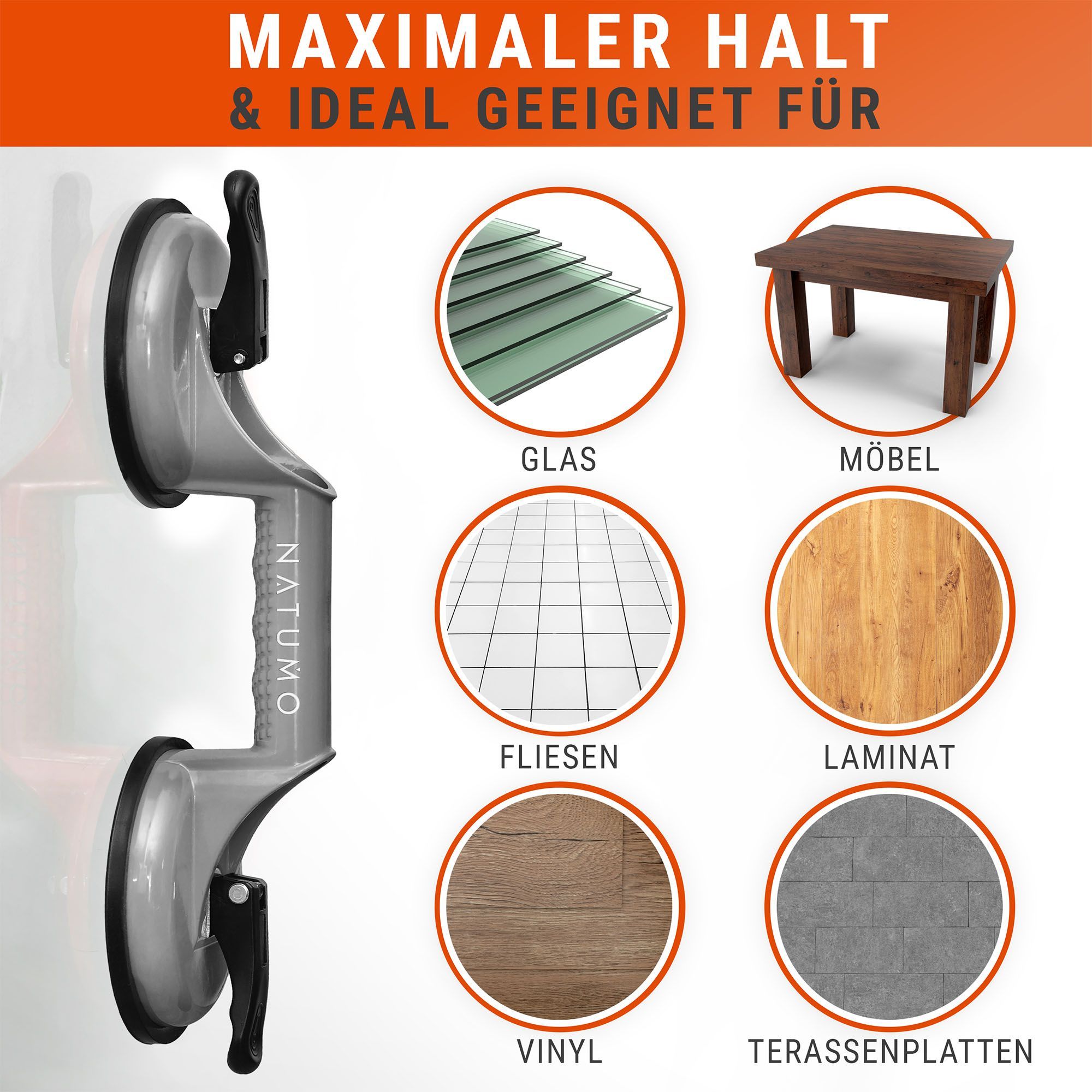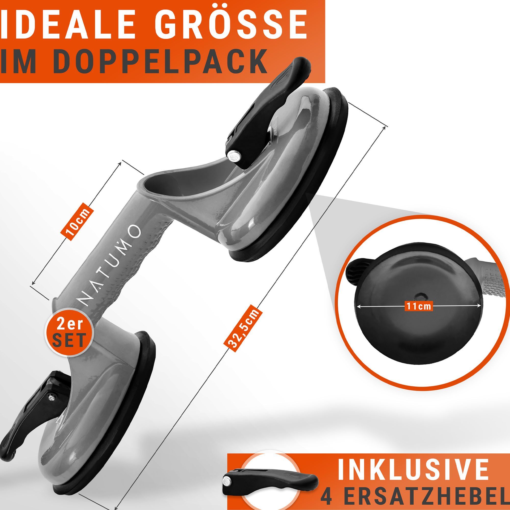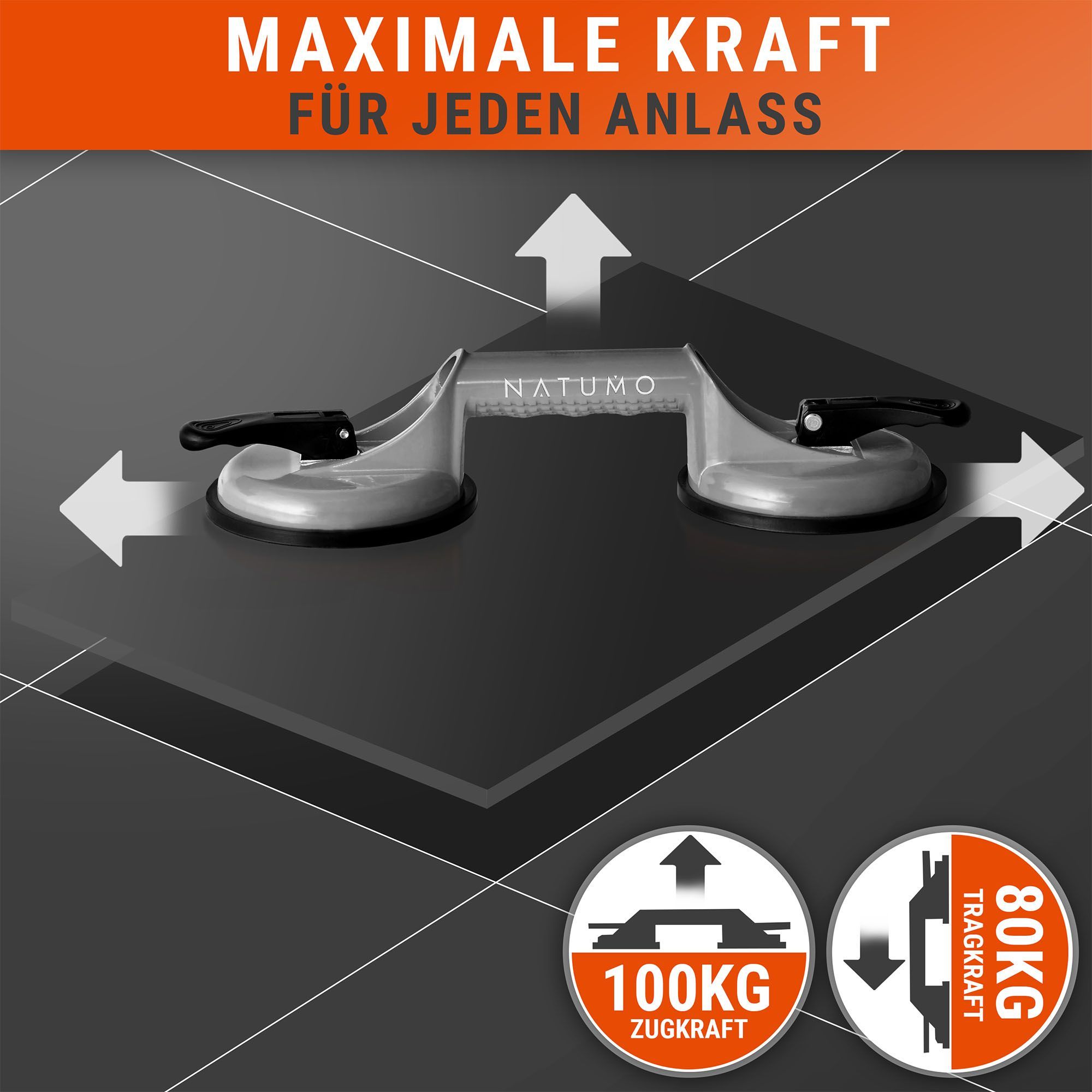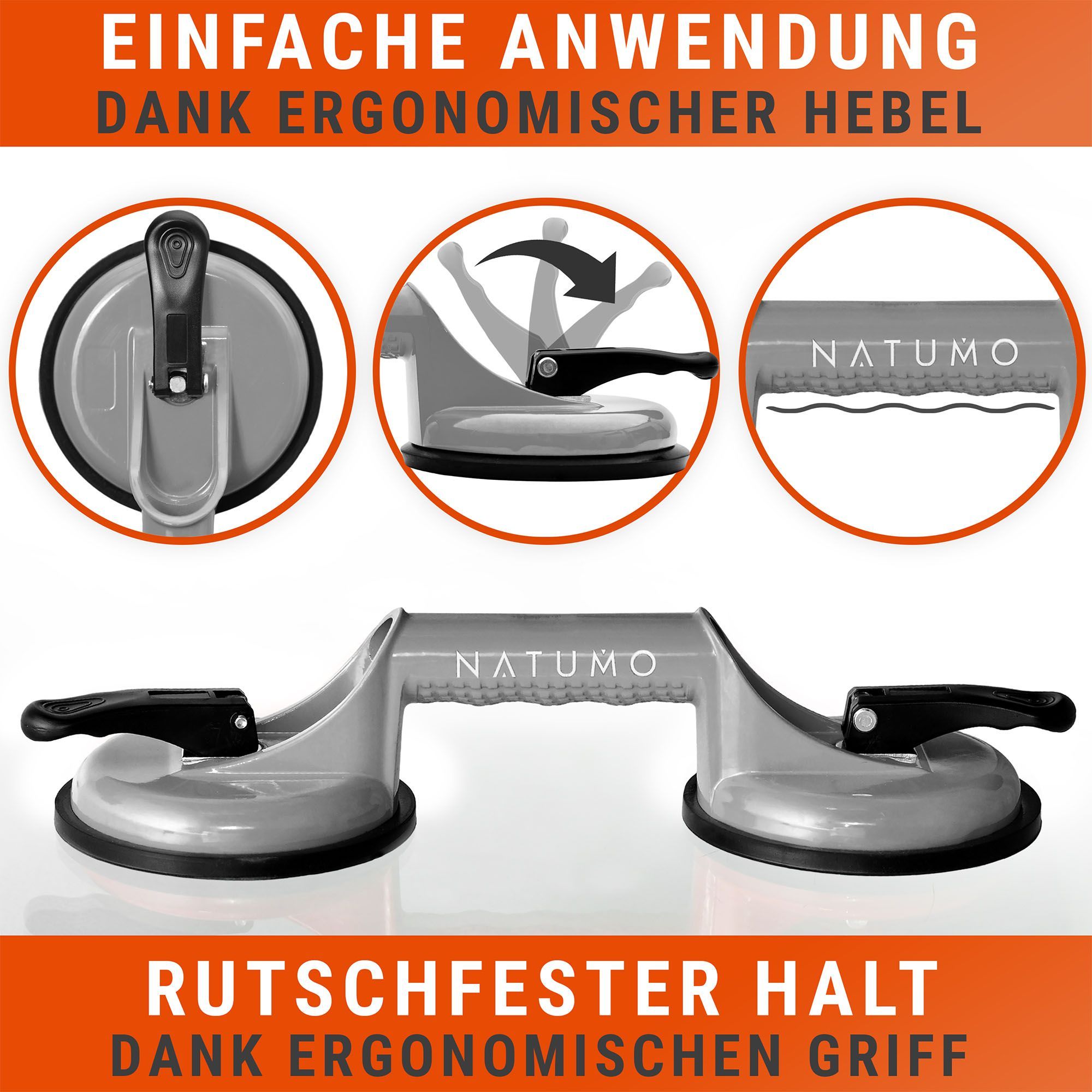 NATUMO® Saugheber [2er Set] - Glassauger mit 100kg Tragkraft - Vakuumheber mit
