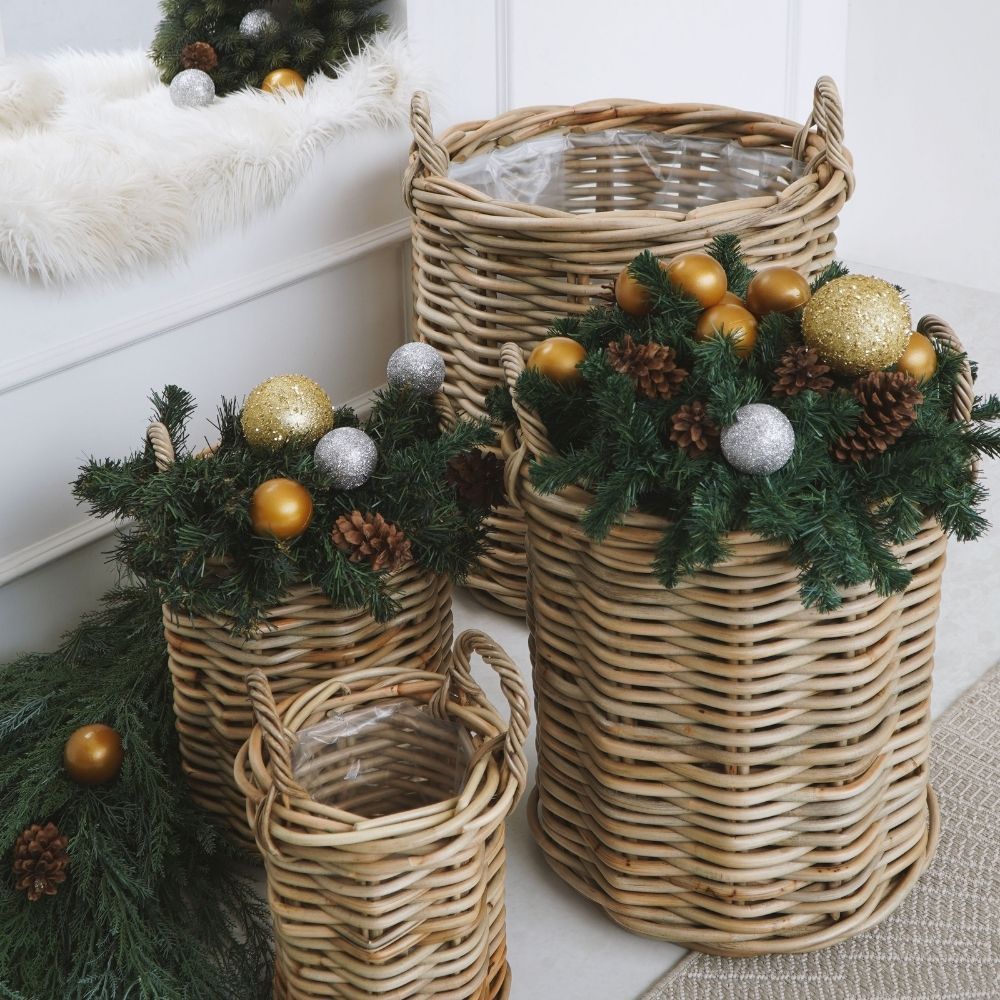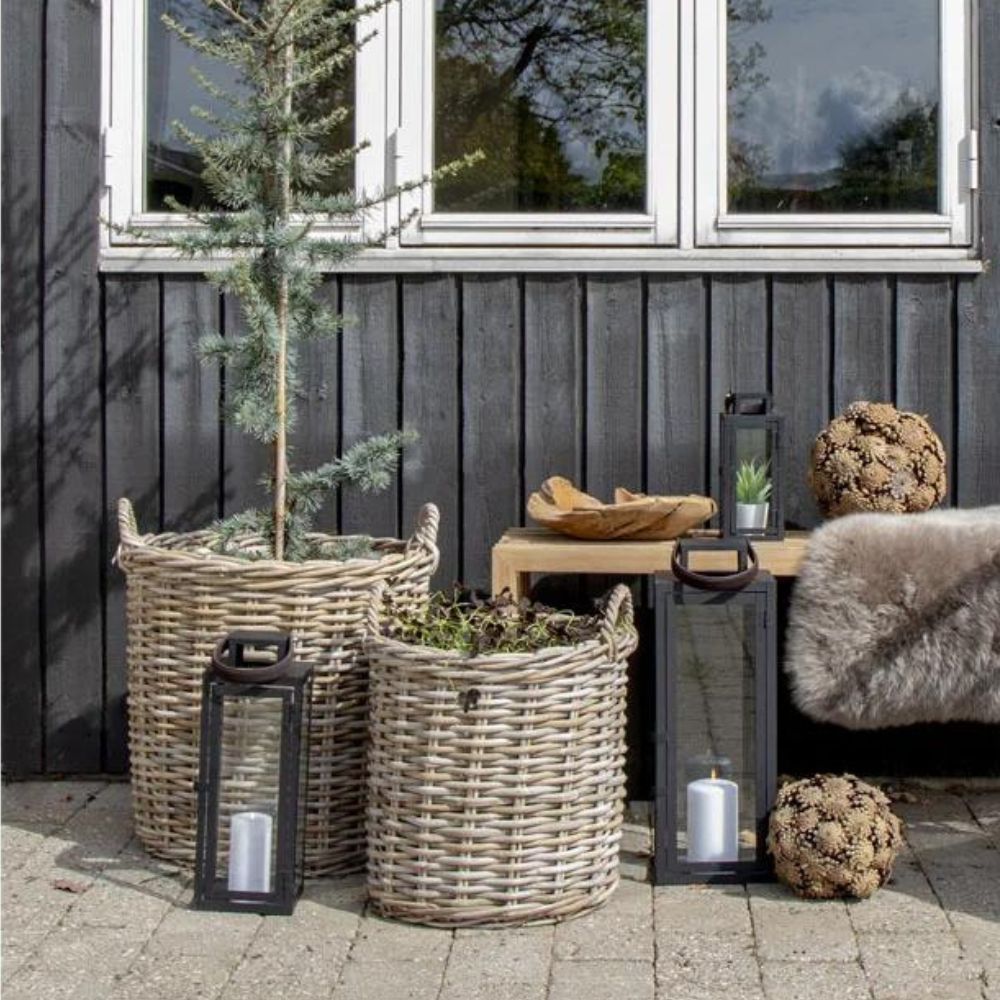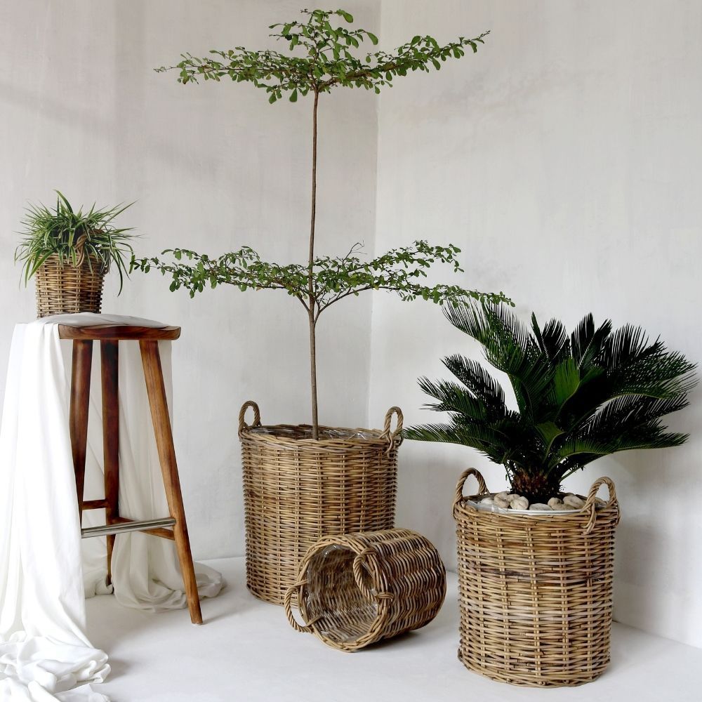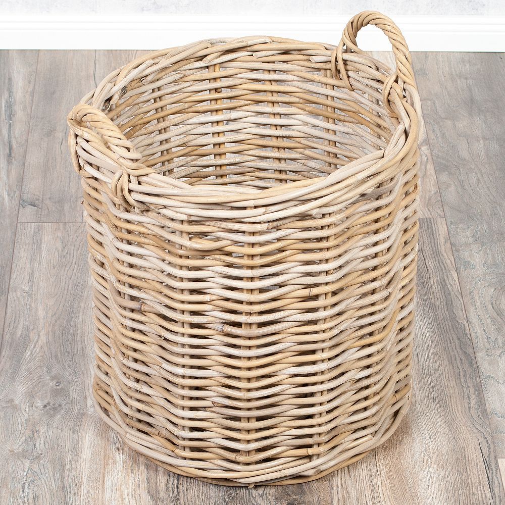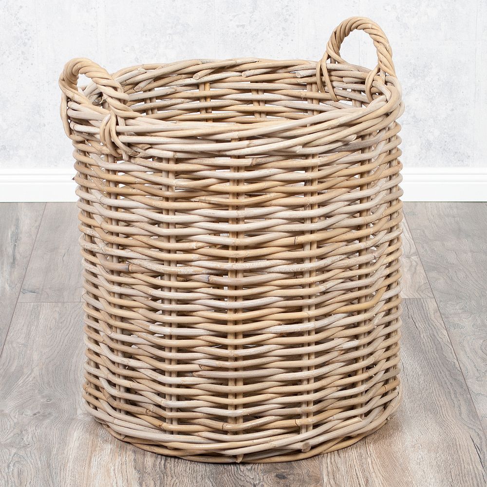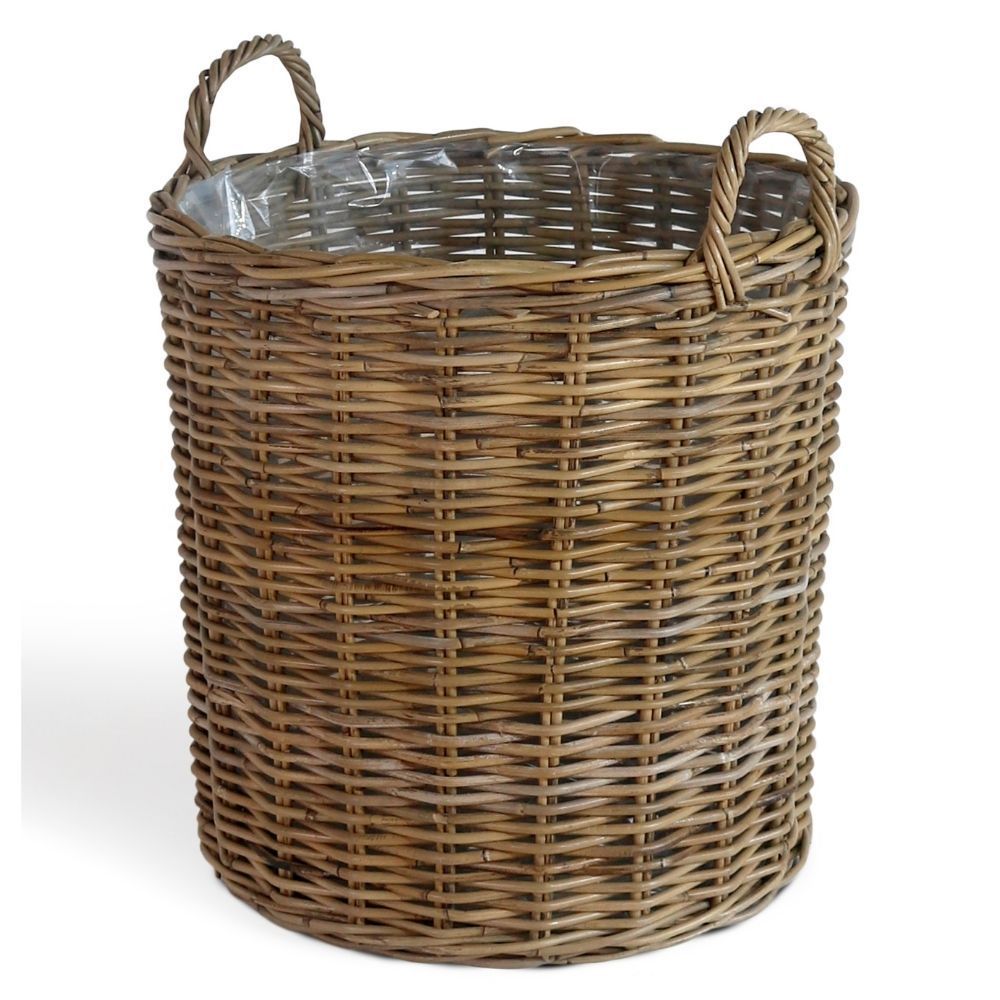 Natur Rattankorb BAKUL rund Grey 50cm Pflanzkorb Inlay Griffe Aufbewahrungskorb Korb