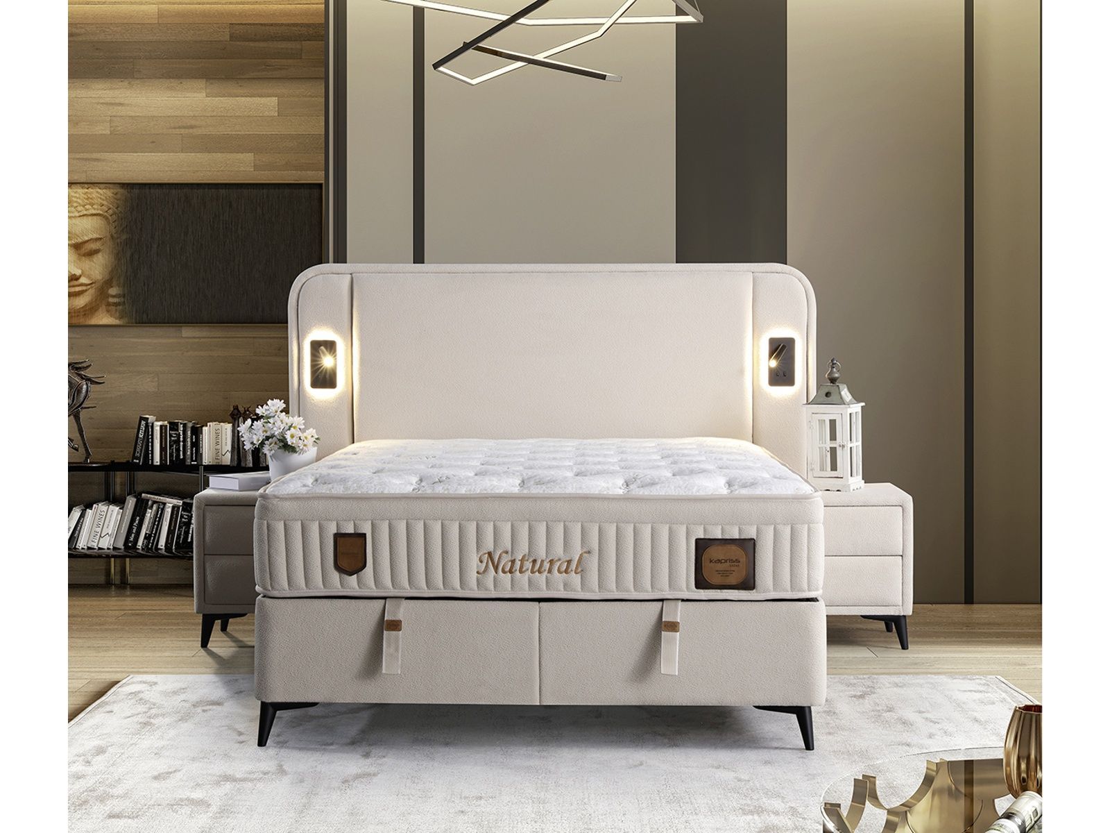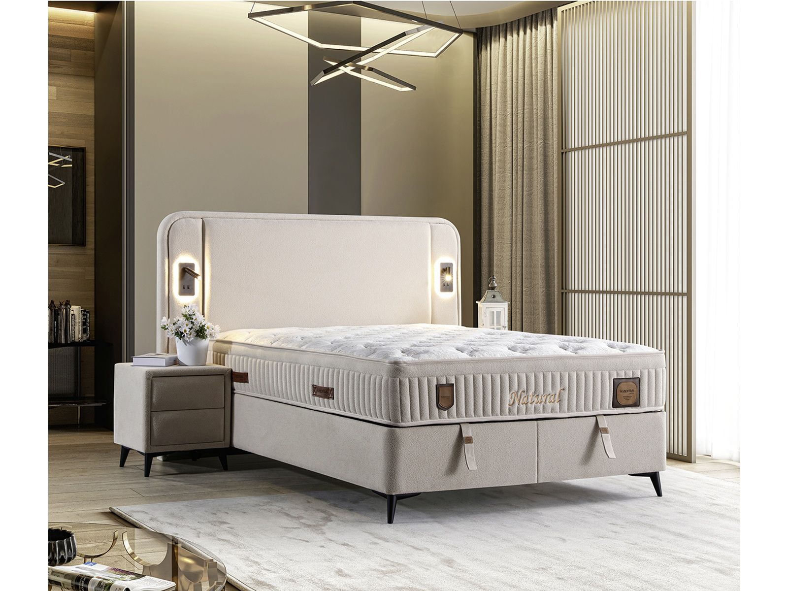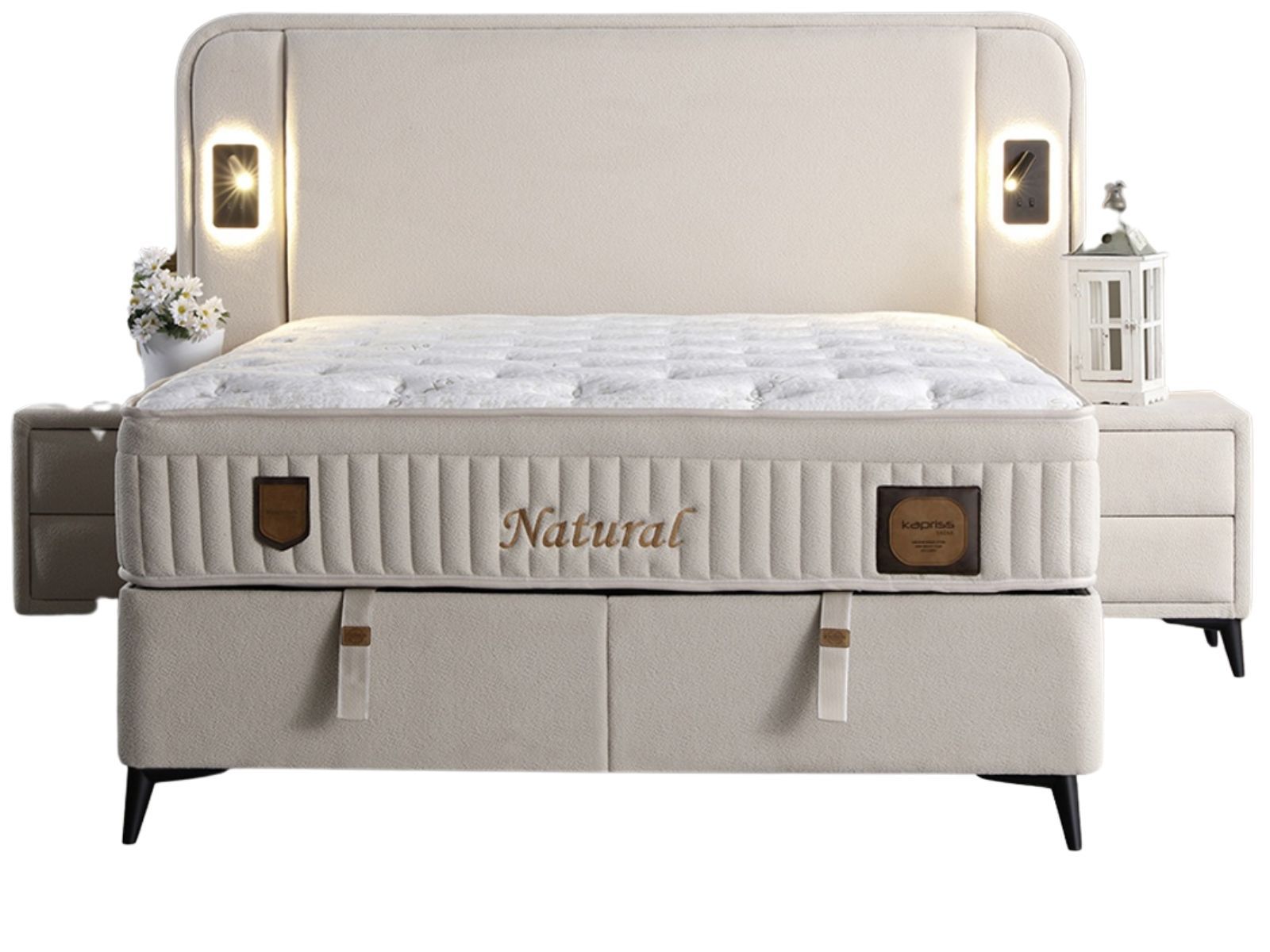 Natural Beige Bett Set – Komfort mit Stil & Beleuchtung