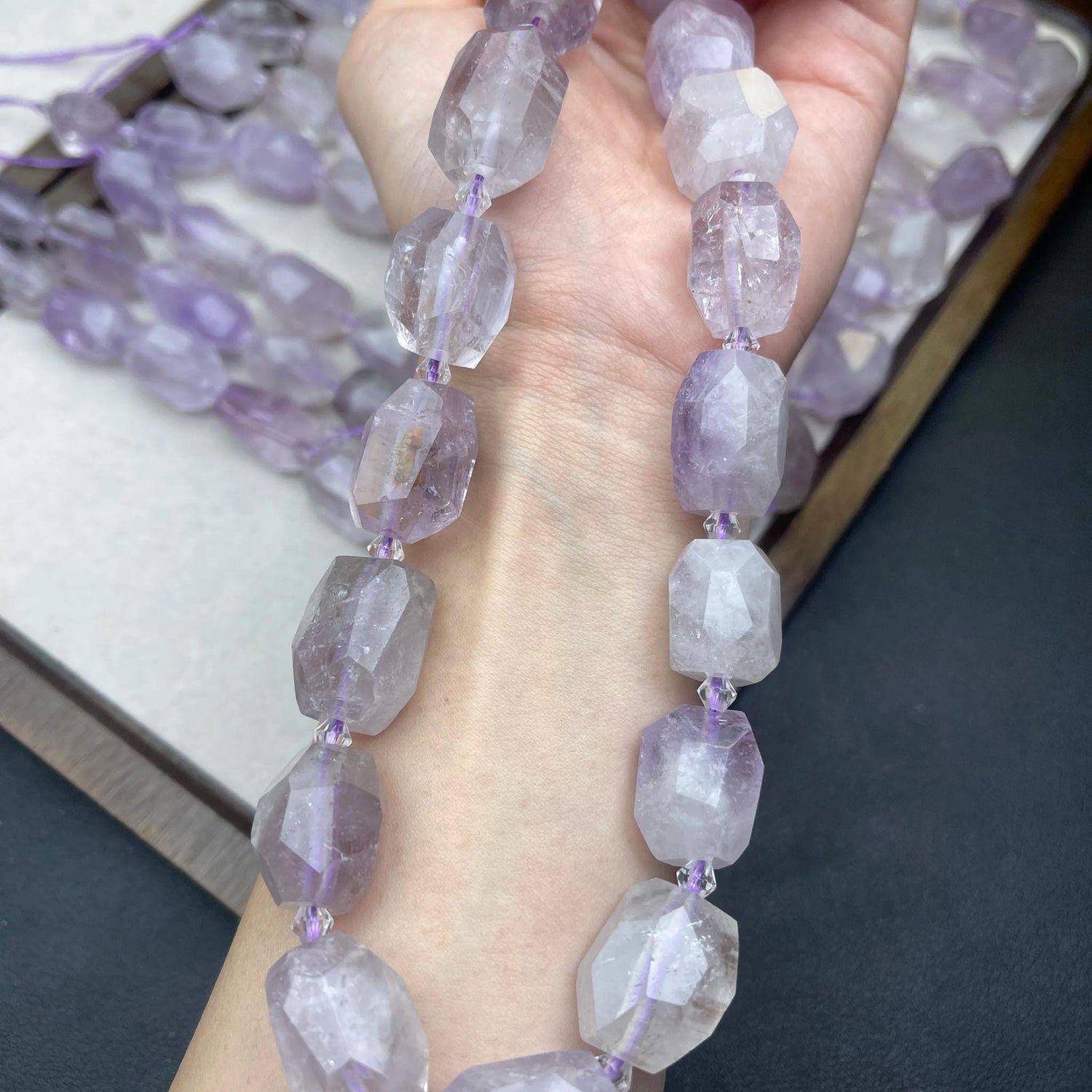 Natural Lavender Amethyst Irregular Faceted Chip Beads 12–16mm · 38cm Strand · Medium Hole · Sparkling Faceted Shine · DIY Bracelet Necklace Earring Jewelry