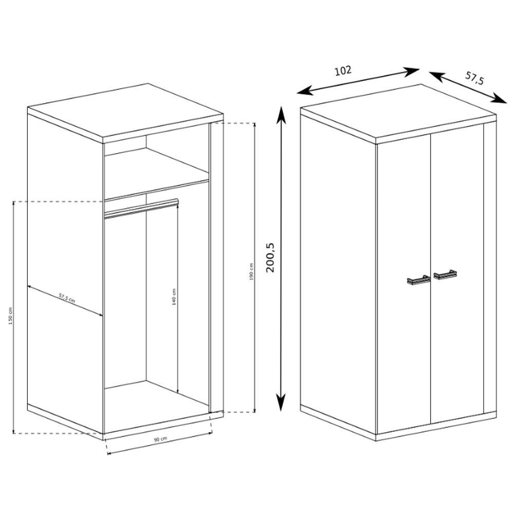 Natural N1 - Zweitüriger Kleiderschrank mit Stange, Wohnzimmer, Schlafzimmer, Marmex