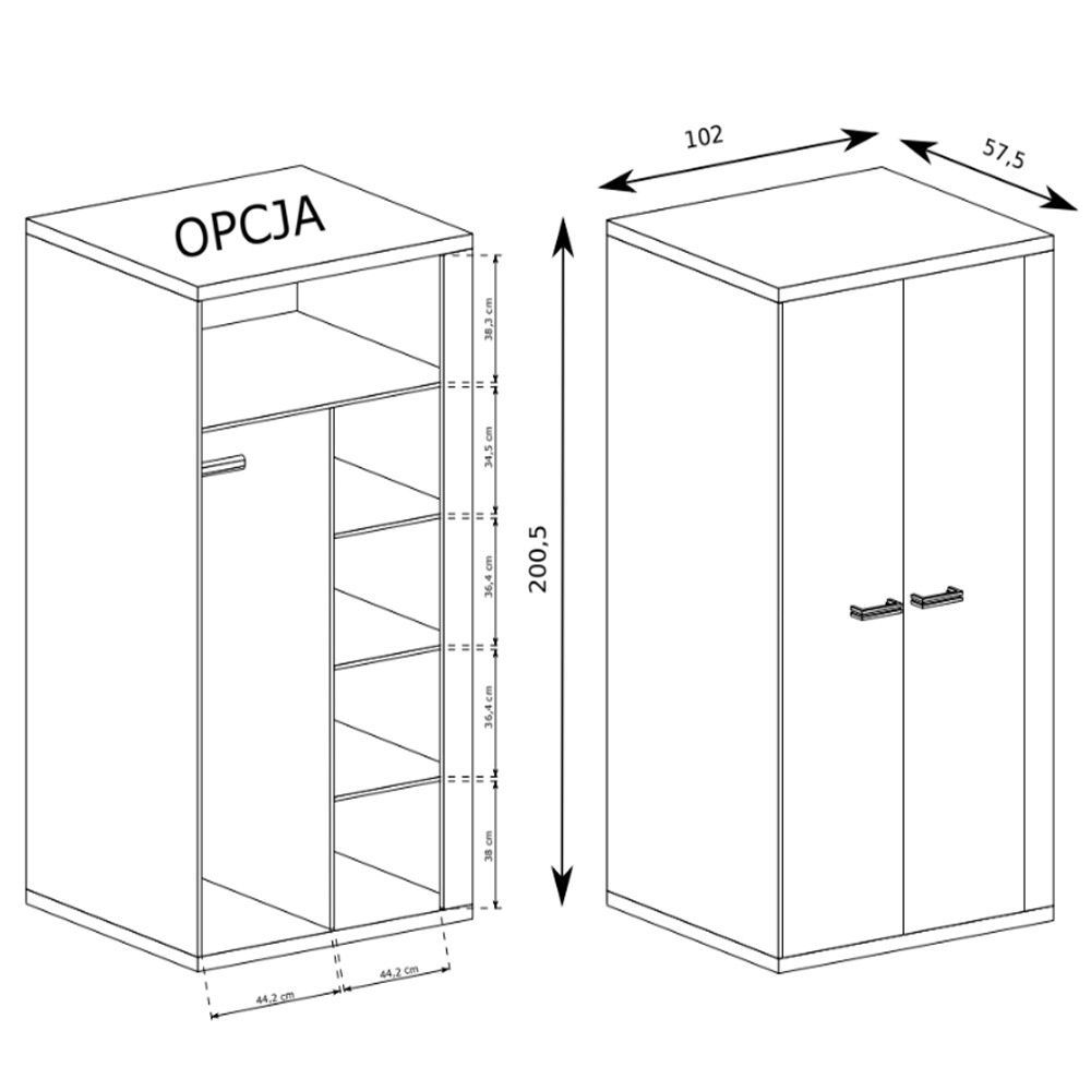 Marmex Natural N1 - Zweitüriger Kleiderschrank mit Stange Farbe: Eiche Ribbeck Frontdesign: Natural Gitter Maße: Breite: 102 cm Höhe: 200.5 cm Tiefe: 57.5 cm Ausführung: 20 Funktionselemente in einem interessanten Design Arbeitsplatten verdickt auf 48 mm Der Vorteil des Systems ist die Holzfront der