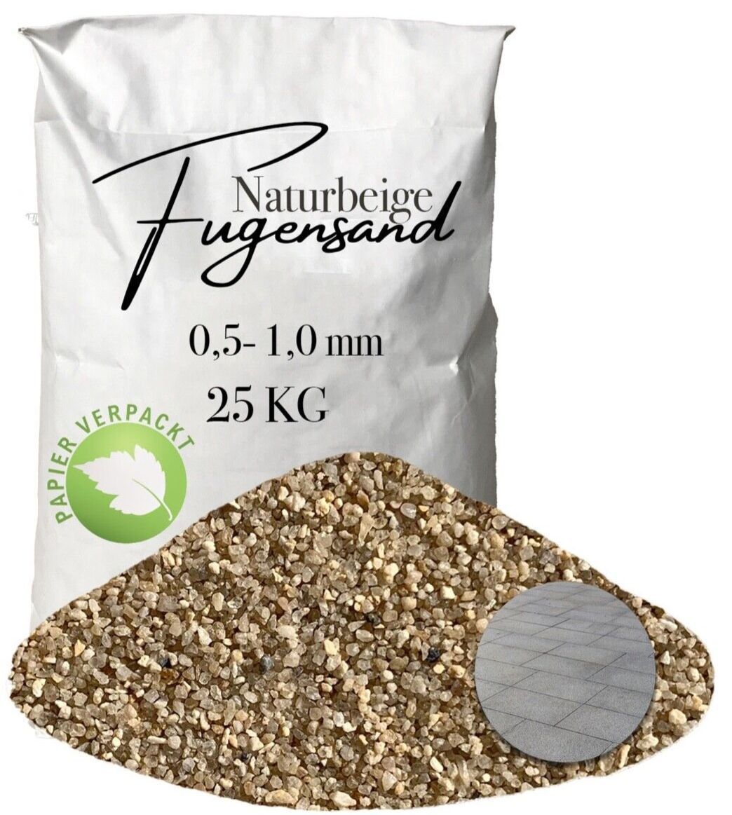 Naturbeiger Quarzsand Fugensand 0,5-1,0 mm 25 kg Papier - Für feine Fugen bei Pflaste