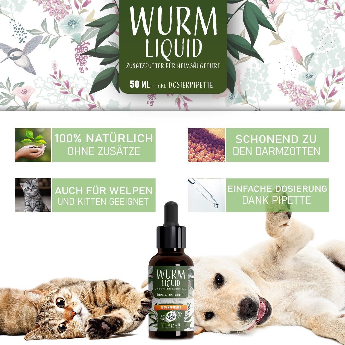 Nature Animal® Wurm Liquid - Entwurmungskur für Hunde, Katzen, Kaninchen & Geflügel