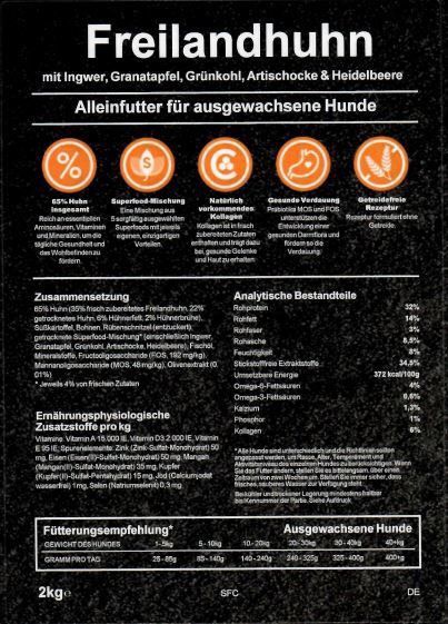 Beschreibung Mit einem extrem hohen Anteil von frischem Hähnchenfleisch In unserem getreidefreien Superfood Trockenfutter mit Freilandhuhn steckt 65 % vom frischen Huhn, welches in Freilandhaltung leben und auf der britischen Farm gefüttert wird. Wie alle unsere Inhaltsstoffe stammt auch das Fleisch