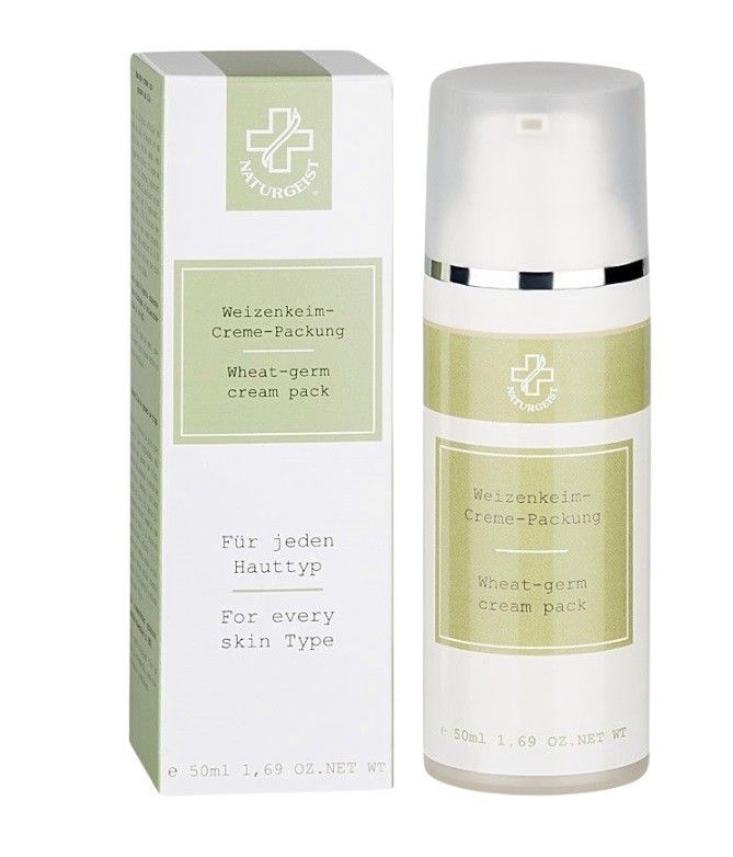 Naturgeist - Hagina Weizenkeim-Creme-Packung - 50 ml Intensive Pflegemaske mit Weizenkeimöl, Avocadoöl und Lecithin. Das Weizenkeimöl enthält Provitamin A und Vitamin F. Verbessert die Struktur und Elastizität der Haut. Zinkoxyd und ein natürlicher Feuchtigkeitsfaktor beruhigen die Haut und spenden ihr Feuchtigkeit.