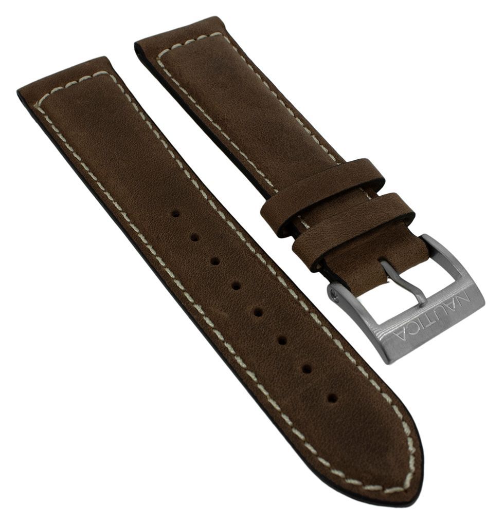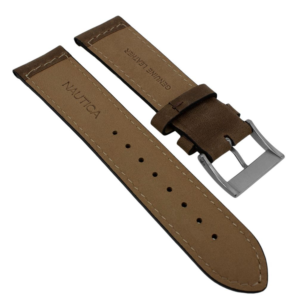 Nautica Herren > Uhrenarmband 22mm braun helle Naht Leder > NAD13500G