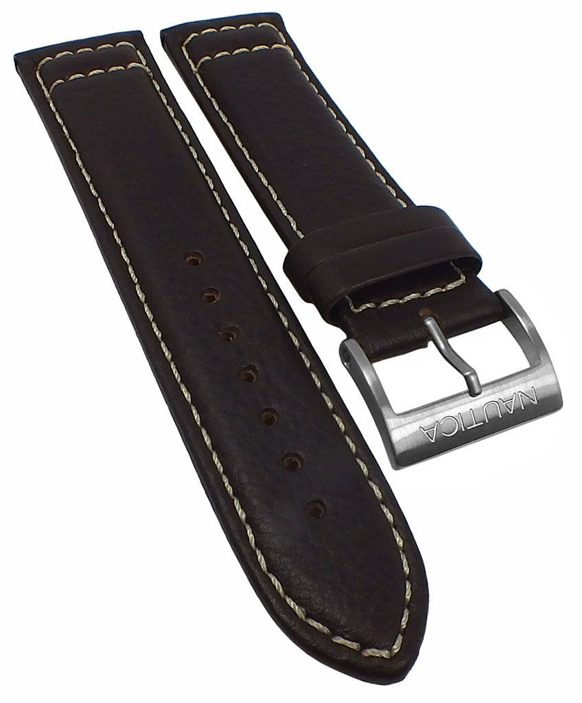 Nautica Uhrenarmband 22mm Leder gepolstert braun helle Naht NA18643GS