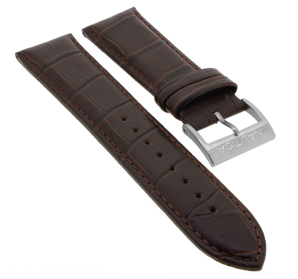 Nautica Uhrenarmband 24mm | Leder Kroko Optik in braun | NAI19509G