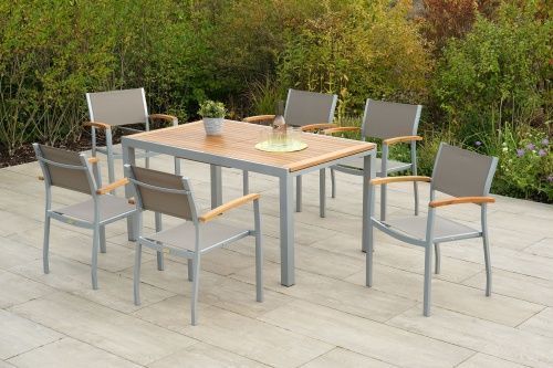 Merxx Naxos Set 7tlg., 6 Stapelsessel, Ausziehtisch 150 (200) x 90 cm