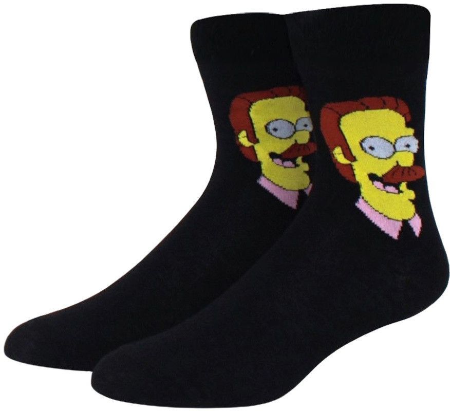 Ned Flanders Schwarze Midi-Socken - The Simpsons Crew Cartoon-Design Socken