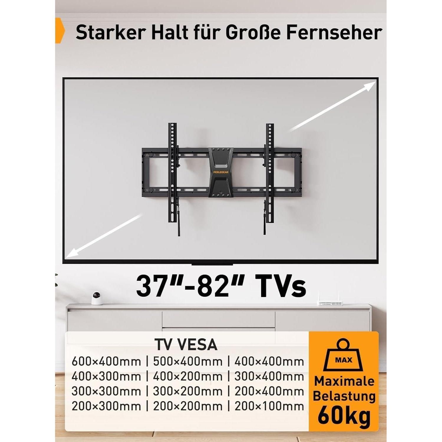 Neigbare TV Wandhalterung 37-82 Zoll bis 60kg VESA 600x400mm