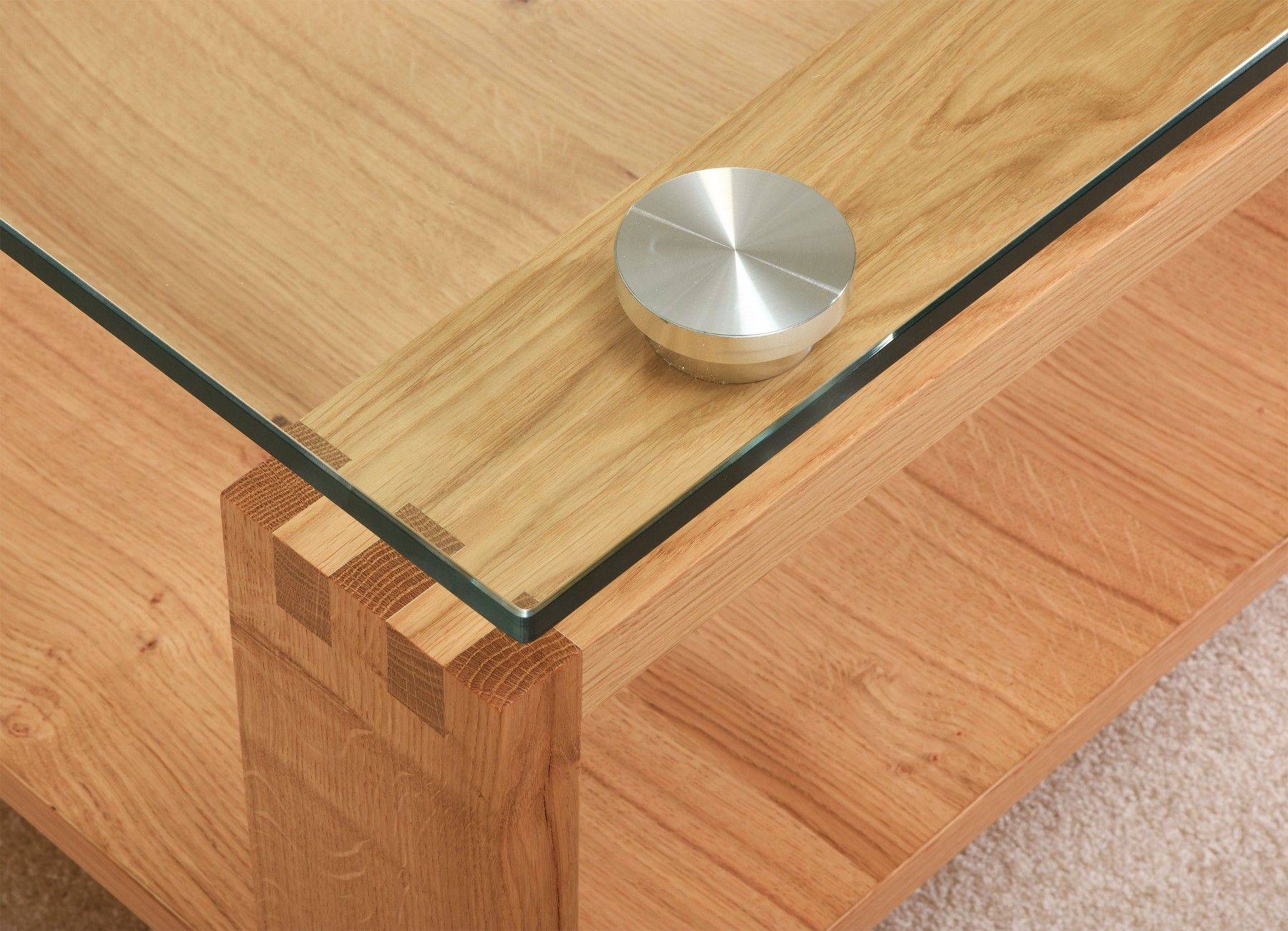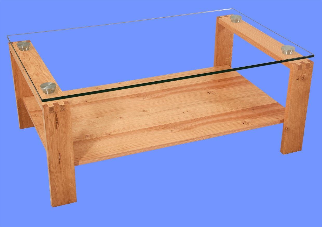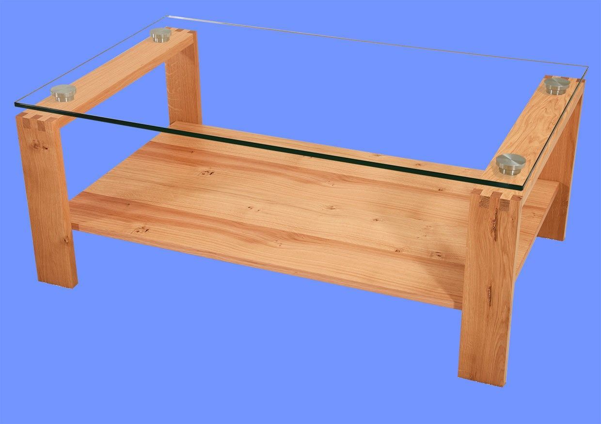 NEL2-H Couchtisch Glasplatte 120x73x50cm Massivholz Zinken-Rahmengestell Wildeiche