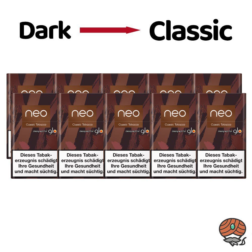neo Classic Tobacco (ehemals Tobacco Dark) - Tabak Sticks für Glo Die neo Classic Tobacco Sticks bieten ein kräftiges, warmes Tabakaroma. Mit ihrer hohen Intensität und der Heat not Burn Technologie erleben Sie ein modernes Geschmackserlebnis. Jahrhunderte lange Tradition des Tabakhandwerks trifft a