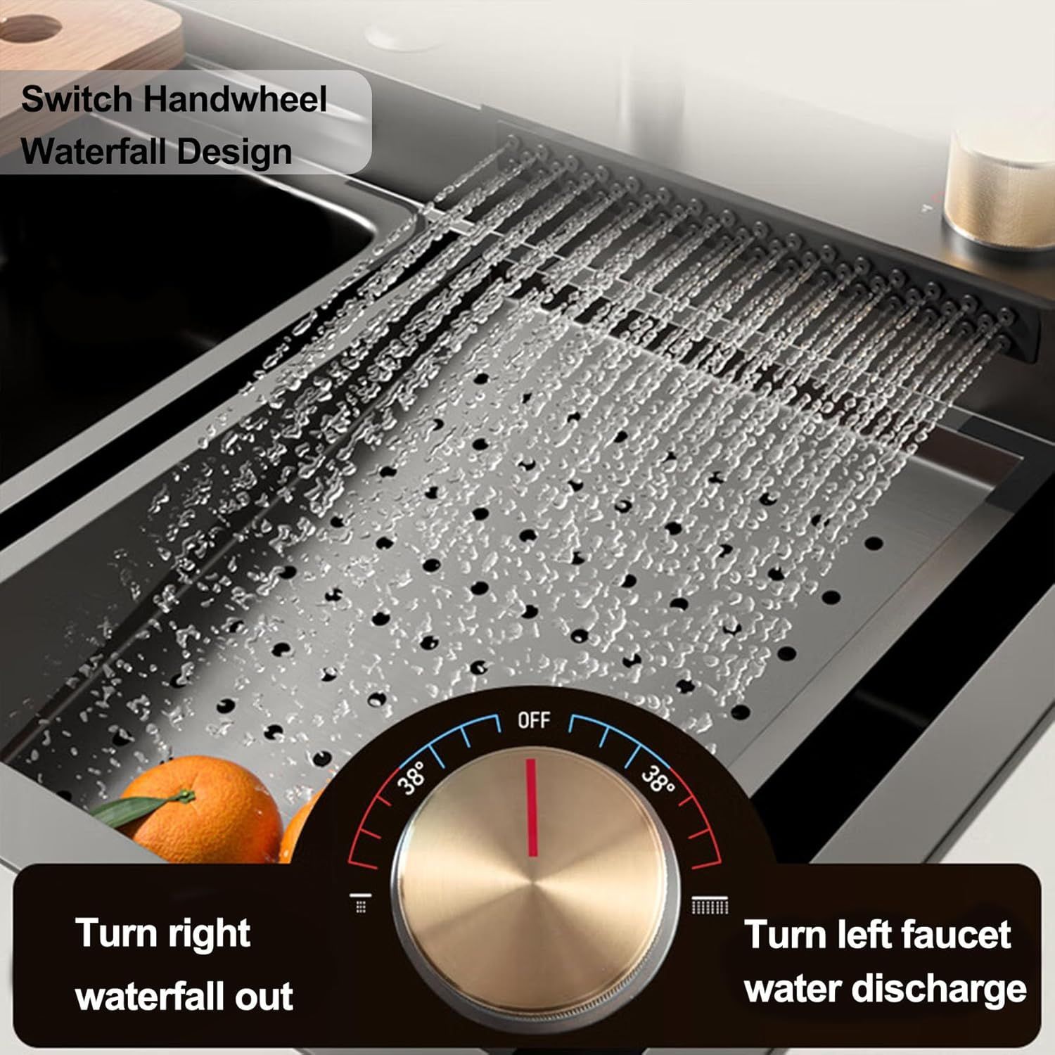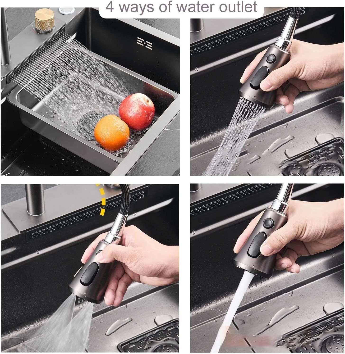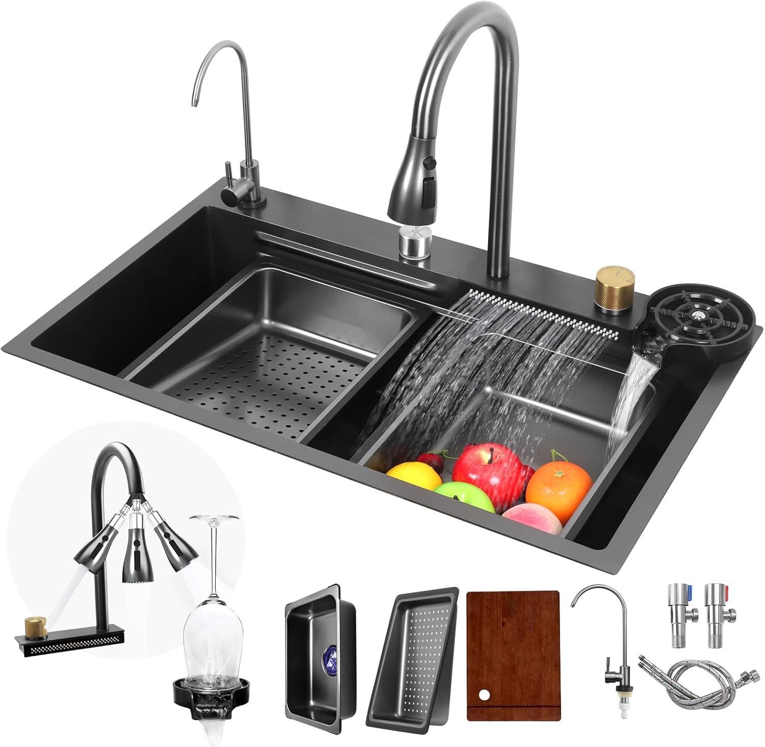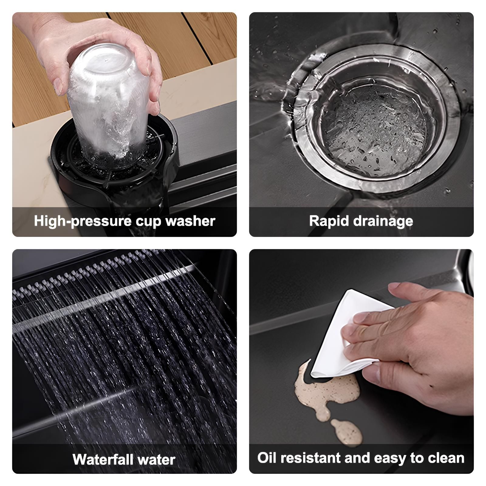 Neom Edelstahlspüle 75x46 cm mit 4-fach Wasserhahn, Wasserfall & Zubehör