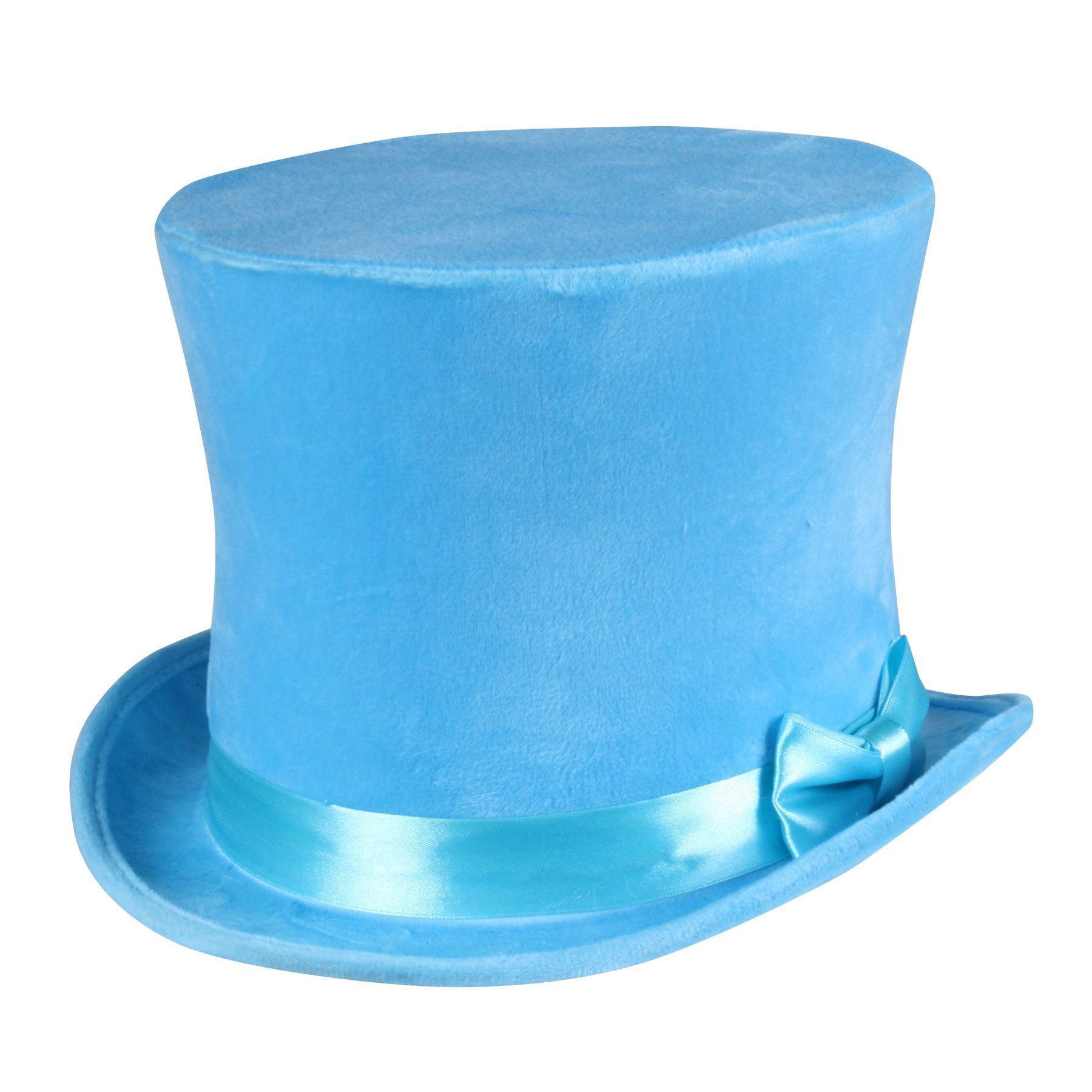 neon blauer Zylinder Hut Flair samtiger Zylinderhut Chapeau Karneval Fasching