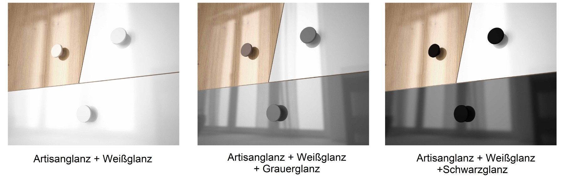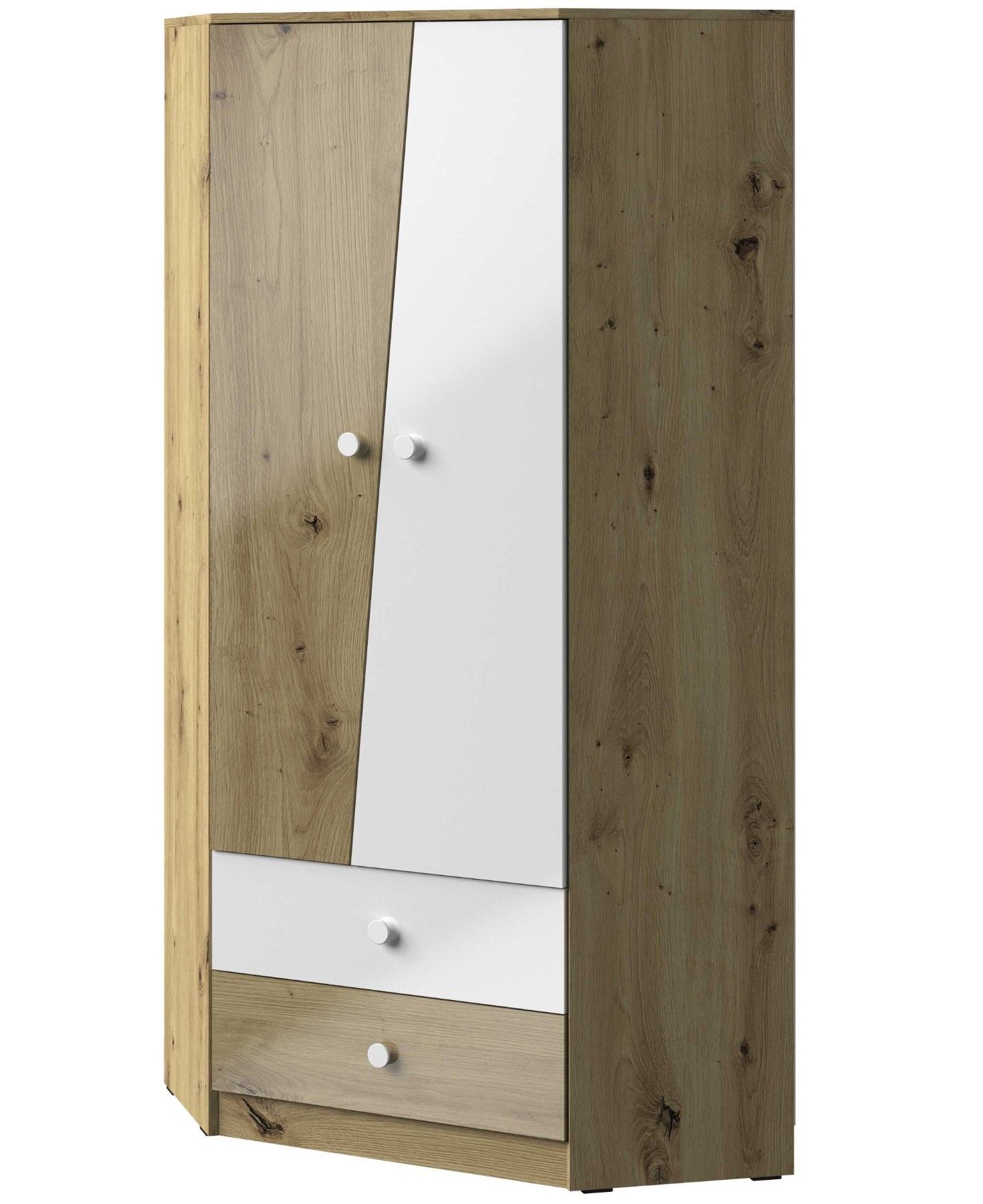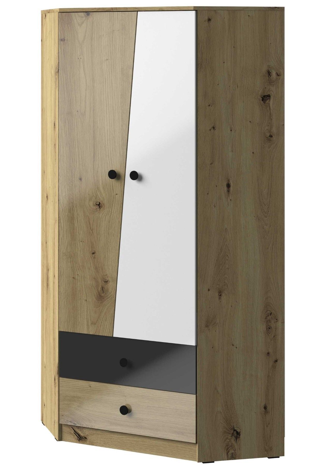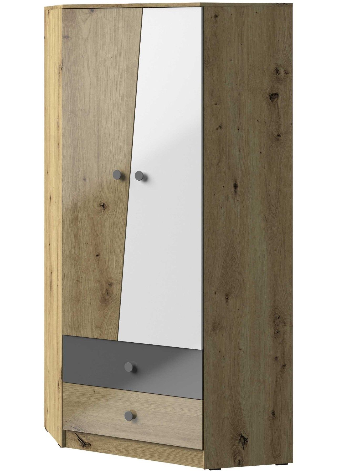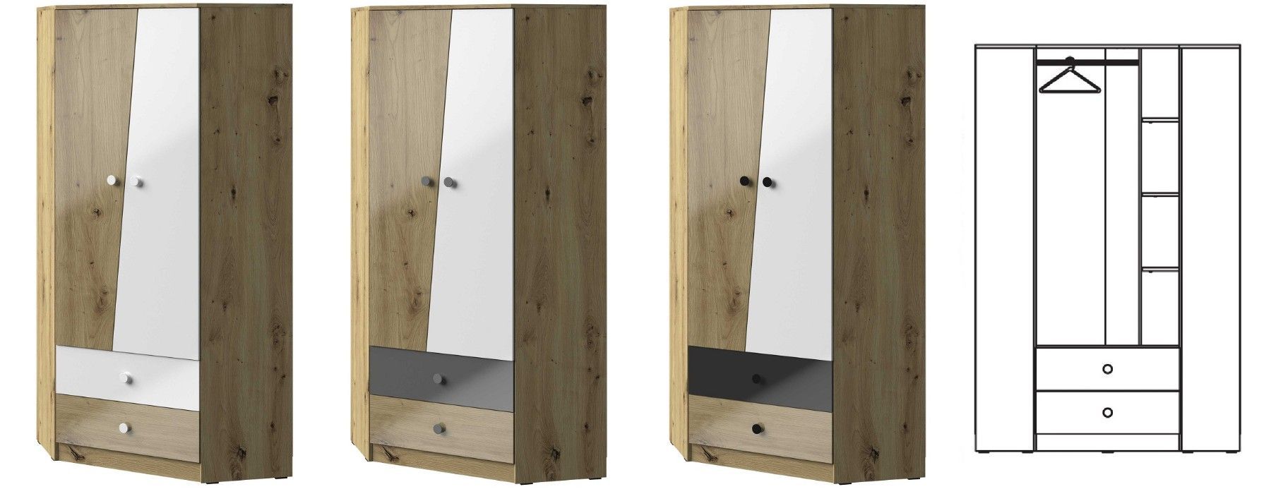 Nero NR2P - Glänzend Eckschrank mit Schubladen, funktioneller Eckschrank mit Einlegeböden für Jugendzimmer, für Kinderzimmer Farbe: Korpus: Eiche Artisan matt Fronten: Eiche Artisan Glanz + weiße Glanz +(weißer Griff) Eiche Artisan Glanz + weiße Glanz + graue Glanz+(grauer Griff) Eiche Artisan Glanz