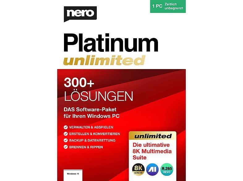 Nero Nero Platinum Unlimited 2024| 1 PC/ WIN|Dauerlizenz|Download|Key per eMail|ESD