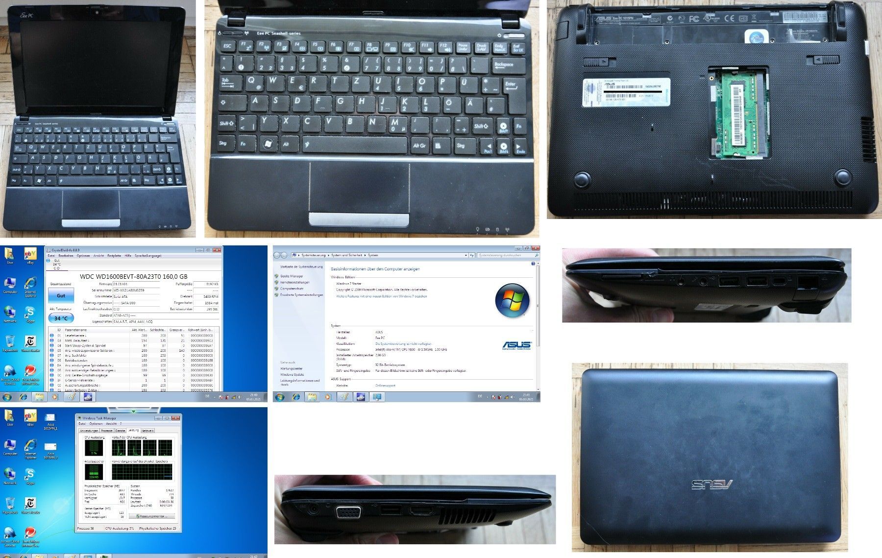 Netbook Notebook Asus Eee PC 1015PN, 10" Atom N550 2x1,50 GHz 2GB 160GB funktioniert perfekt. Optisch: gut Intel Atom N550, Dual-Core 2x1,50 GHz 2 GB RAM 160 GB HDD, hat nur 395 Betriebsstunden und ist somit fast neuwertig Grafikprozessor: GMA 3150, Integrierte / On-Board-Grafik Bildschirm: 10.1 Zoll ,1024 x 600 Pixel Windows 7 + Key. Webkamera 3x USB 2.0, VGA, HDMI, Kensington Lock, Mikrofon, Kopfhörer, Card Reader: SD, MMC (SDHC) WLAN Nvidia ION 2 Grafik